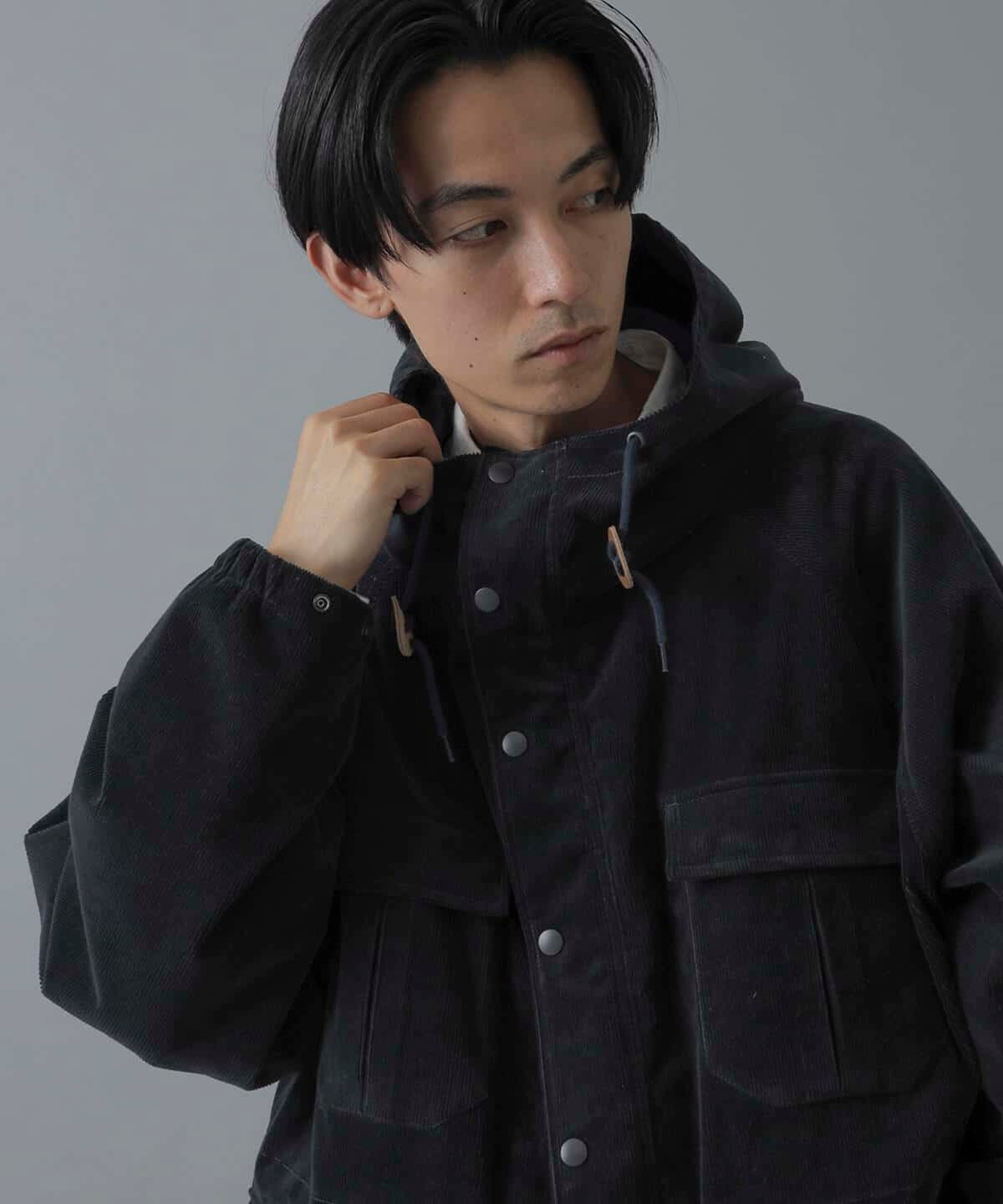 非常に滑らかな肌触りと、ふっくらとした膨らみを感じられる中畝のコーデュロイを採用。裏地は起毛されたメッシュ調の特殊な素材を選定し、通常のポリエステルツイル裏地に比べ温かみのある仕上がりです。腰上部分に内蔵されたドローコードでシルエットに変化を付けられます。