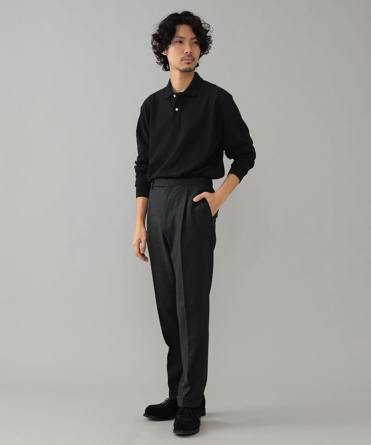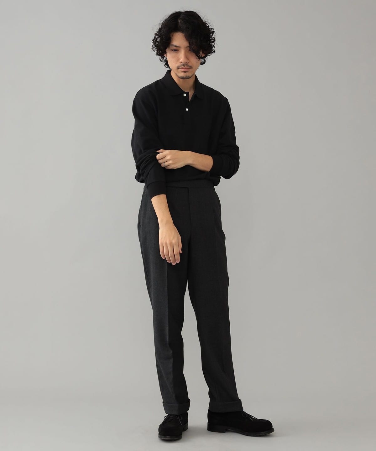 フランス国内の自社工場での生産に拘った〈ELACIO〉のロングスリーブポロシャツ。フレンチらしさを感じさせる襟の形状など、どこか懐かしさを感じさせる見た目に、これまでのノウハウを活かしたフィッティングが組み合わされています。大人が愉しめる程よいゆとりを持たせることで、インナー使いから1枚着としても、幅広いコーディネートに活躍する仕上がりとなっております。