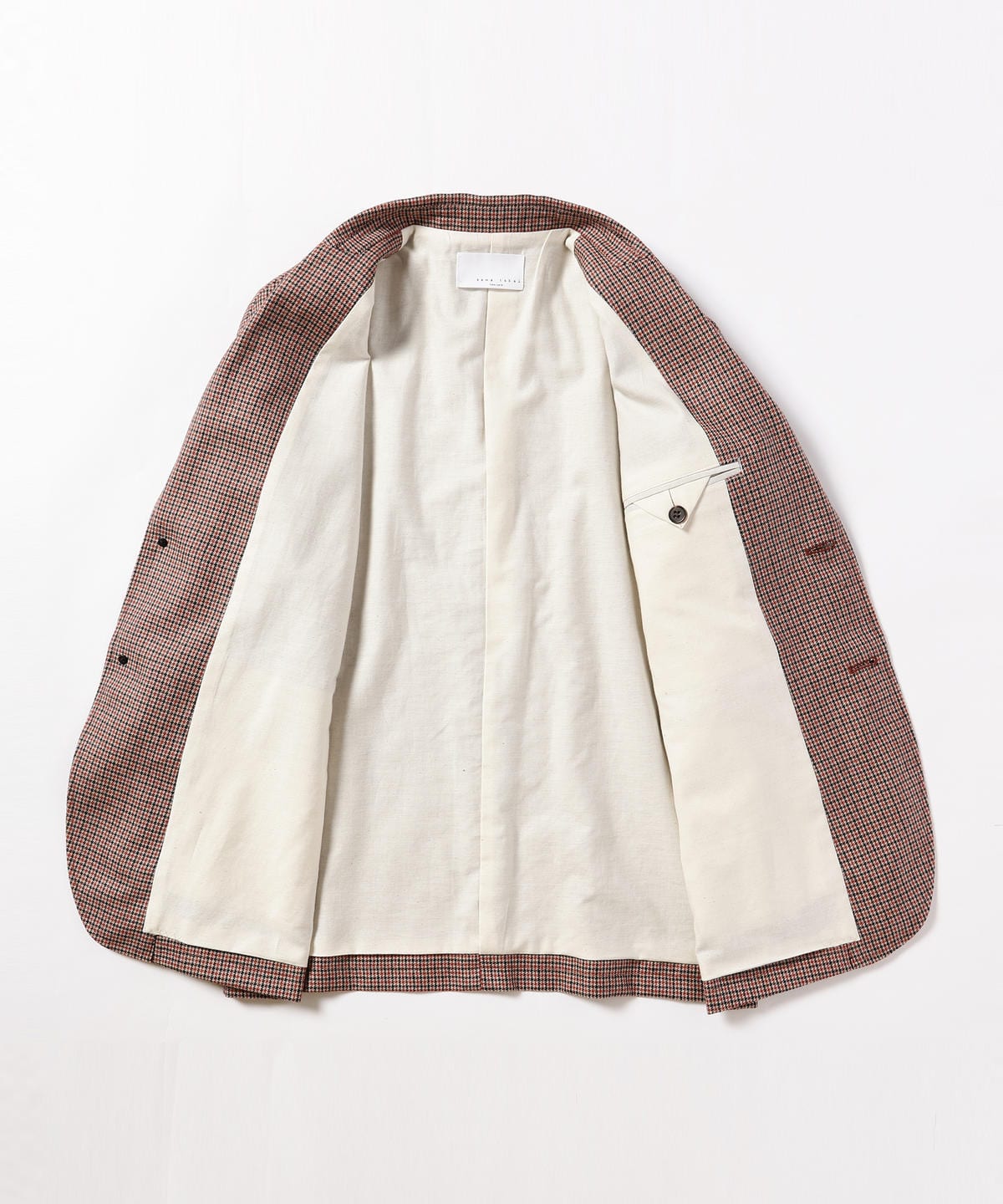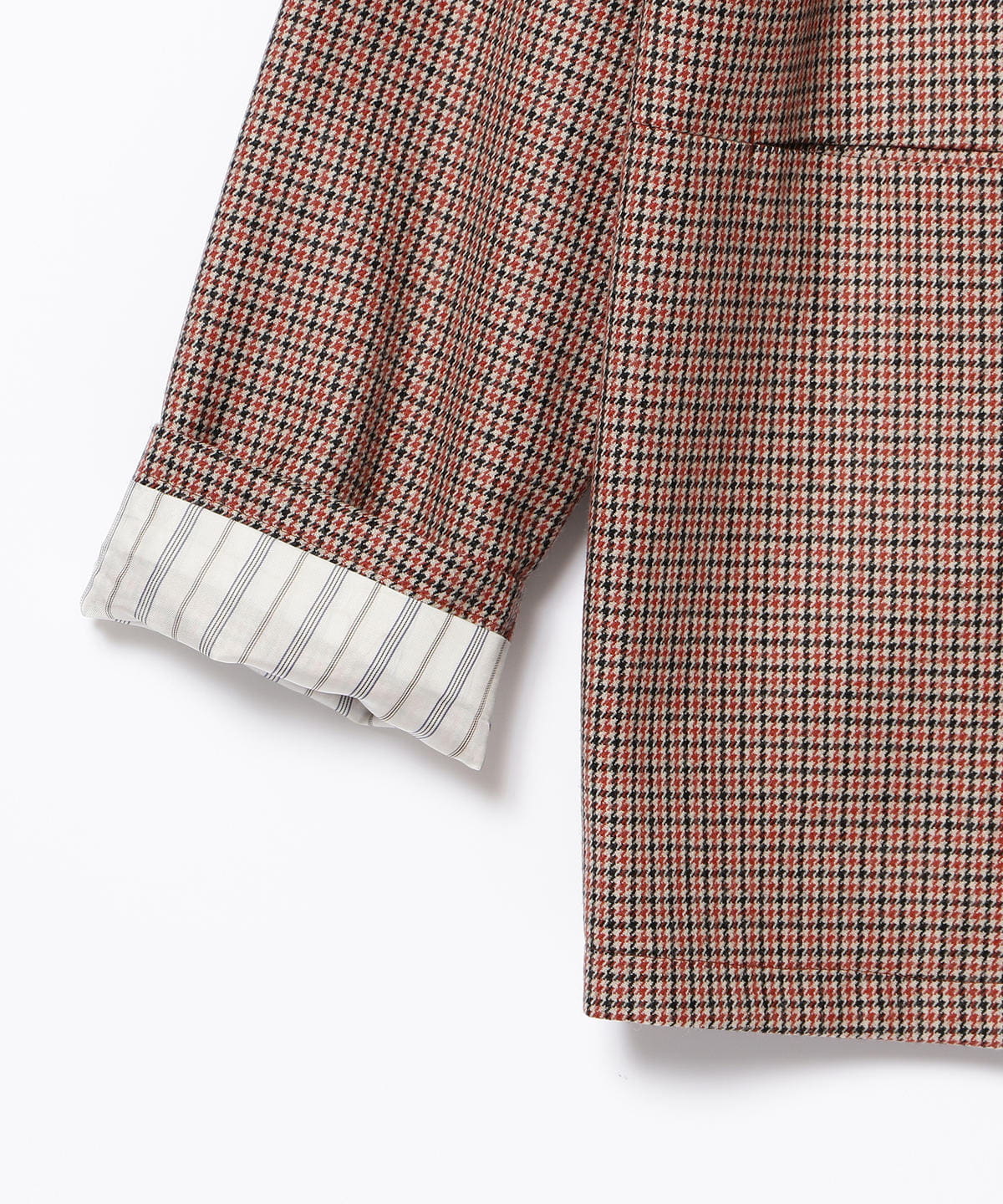 クラシカルな着こなしが印象的なテニスプレーヤー、「リッチー・テネンバウム」のルックを取り入れました。彼の代表的なルック、キャメルのブレザーのような柔らかく温かな印象を与える素材のウールを選び、今シーズンメインの生地であるガンクラブチェックで作りました。オーバーサイズ+ドロップショルダーですので、硬くなり過ぎなく、気軽に羽織って頂けます。