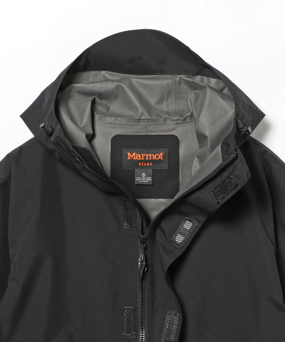 機能素材を使用した、様々なシーンで使える人気の別注モッズコート。生地には、防水性があり非常に軽量なGORE-TEX(R)Pac-Liteを使用しています。フロントはダブルジップ、またテープとスナップボタンが一体型になったブロックテーピーを採用し、テクニカルなディテールをプラス。リフレクタープリントの袖ロゴ、刺繍で施したトーナルカラーの裾ロゴもポイントです。