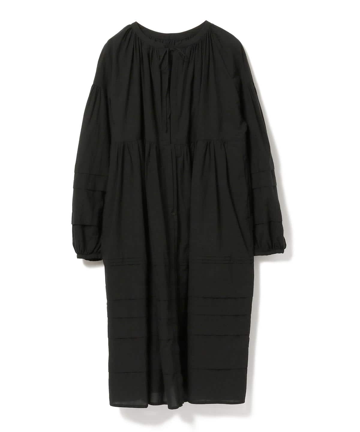 ふんわりとした可愛らしい印象のシャツワンピース。裾部分に施されたタックや、ワッシャー加工によるヴィンテージライクな風合いが魅力のひと品。前後どちらも着用可能なバックトゥフロント仕様の為、様々なレイヤードスタイルを楽しめる1着です。