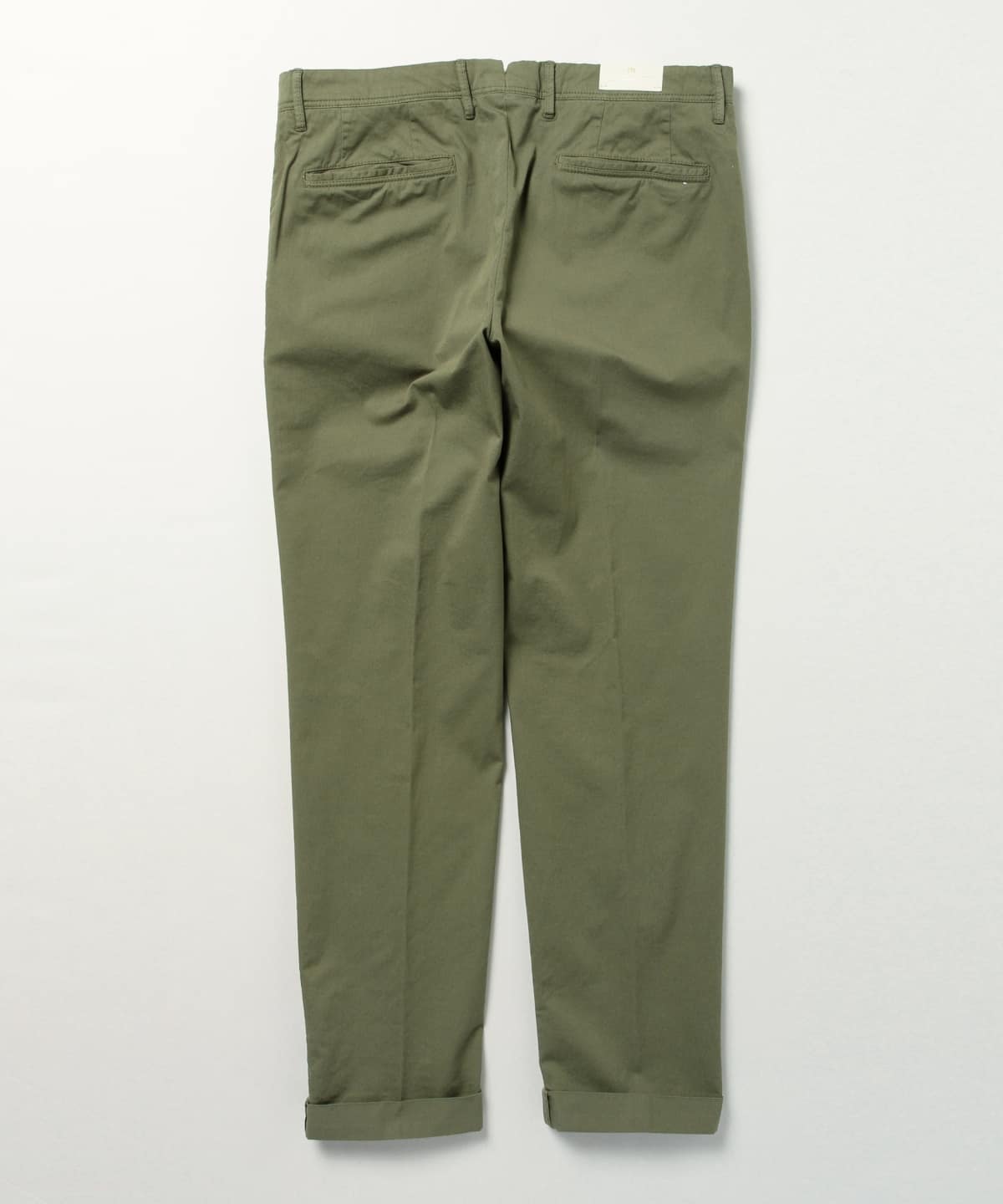 腰回りのフィッティングすっきりとして、安心感のあるスリムシルエット。プリーツモデルのパンツで、持ち出しのディテールやテーパードの強さも現代的です。