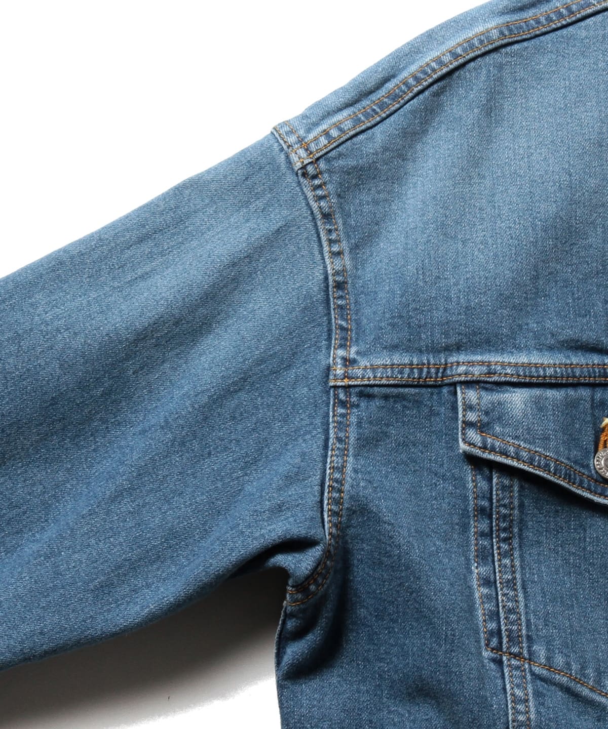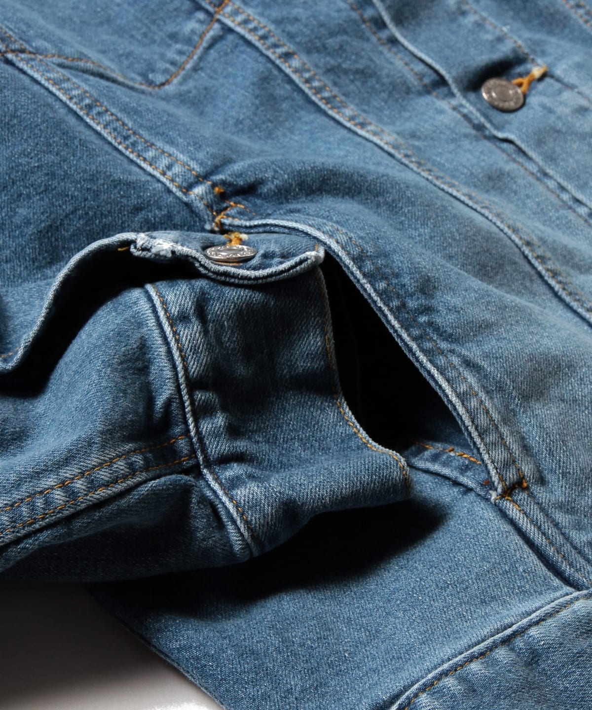 3rd型ジャケットをベースにドロップショルダー、ビックシルエットを採用したデニムジャケット。全体のシルエットにゆとりをもたせることで、よりモダンな表情に仕上がっています。フロントのフラップポケットに加え、ハンドウォーマーも兼ね備えた機能的なデザイン。また、ストレッチ性のあるボディなので快適な着心地です。