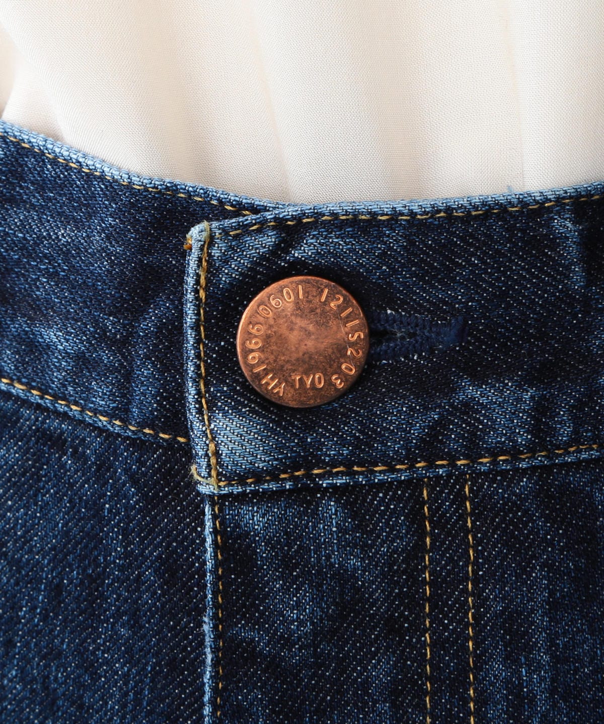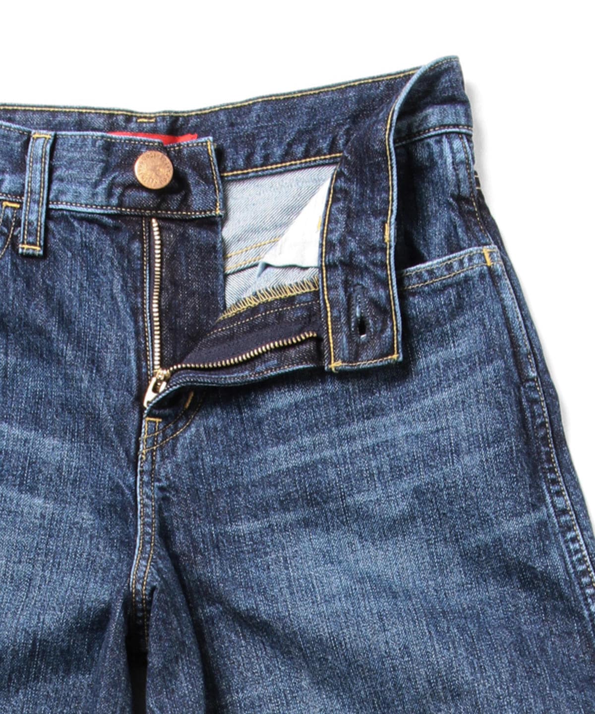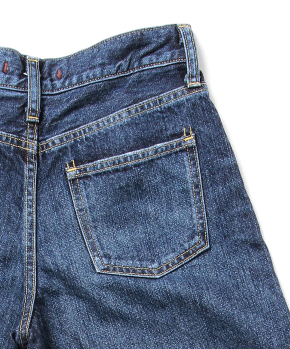 ミドルライズでウエストから裾に向かって緩やかに広がるシルエットなので、美脚効果も◎。日本人の体形に合わせた丈感で、バランス良くお召頂けます。シボ感のあるUSEDデニムのような風合いの生地を使用しています。