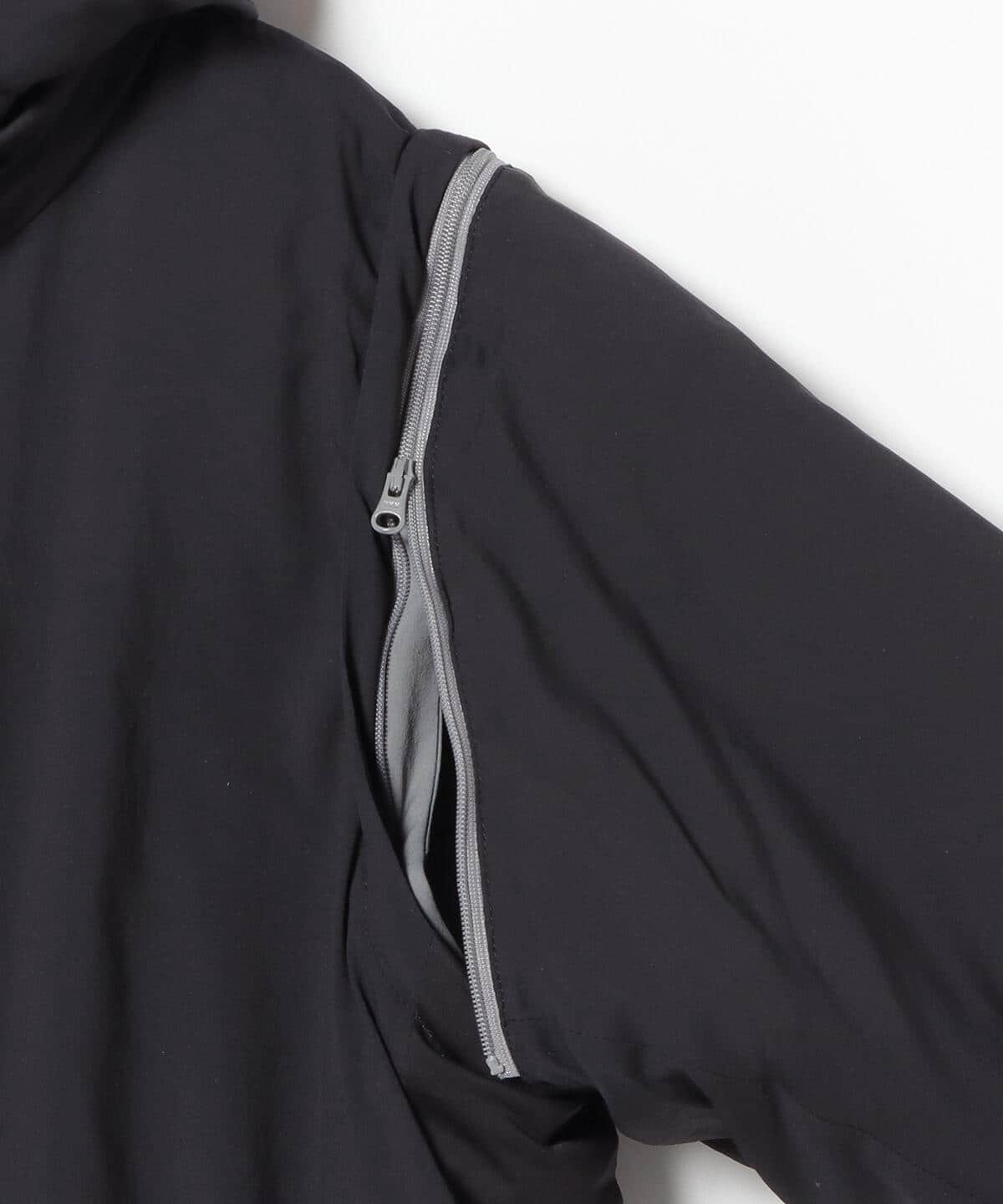 撥水、ストレッチ性のある『PERTEX(R)』を表地に使用した4WAYブルゾン。中綿入りで暖かく軽やかな着心地が特徴的なアイテムです。リバーシブルのほか、スリーブパーツの脱着が可能でベストにも、気候やシーンに応じてスタイルアレンジをお楽しみいただけます。今すぐワードローブに加えたい1着です。