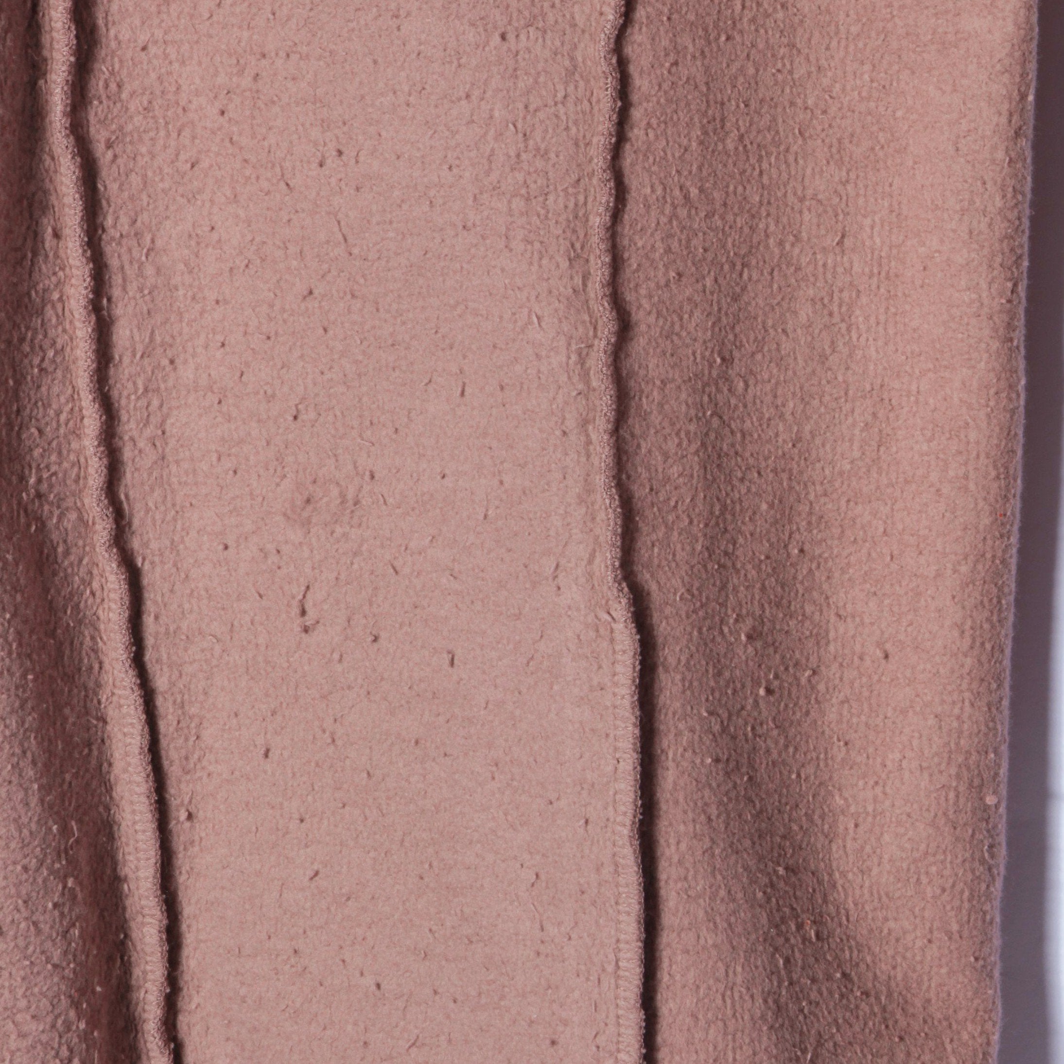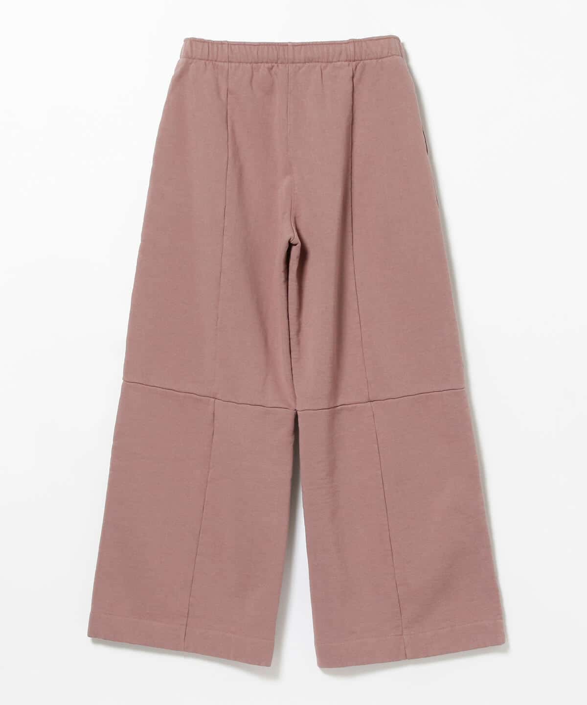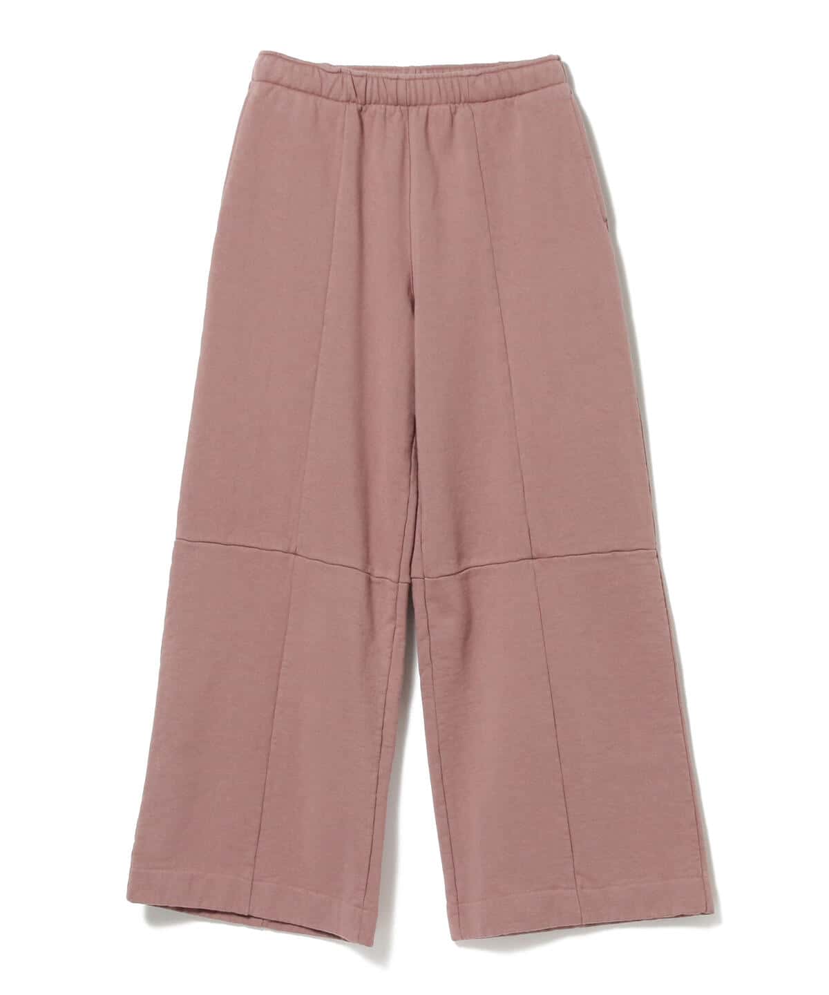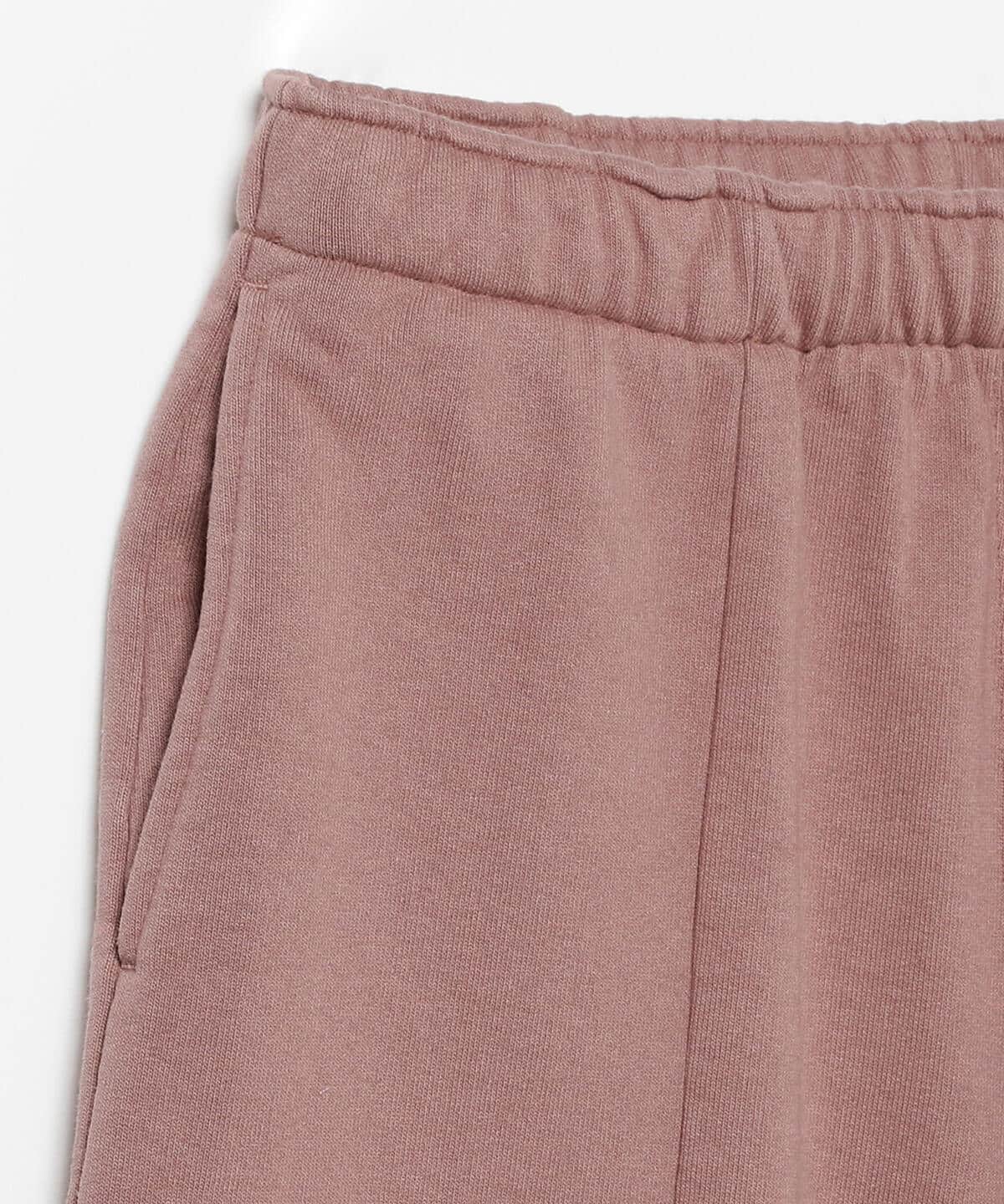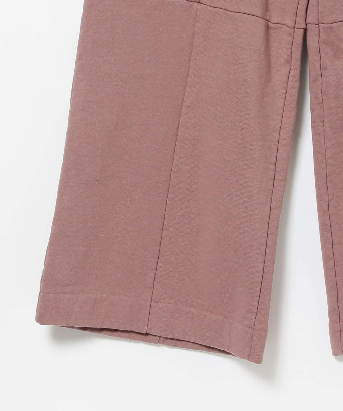 柔らかなローズピンクが印象的なコットンパンツ。一見シンプルながらも、フロントとひざ下に入った切り替えがアクセントになっています。リラックス感があるデザインは、ワンマイルコーデにも大活躍します。