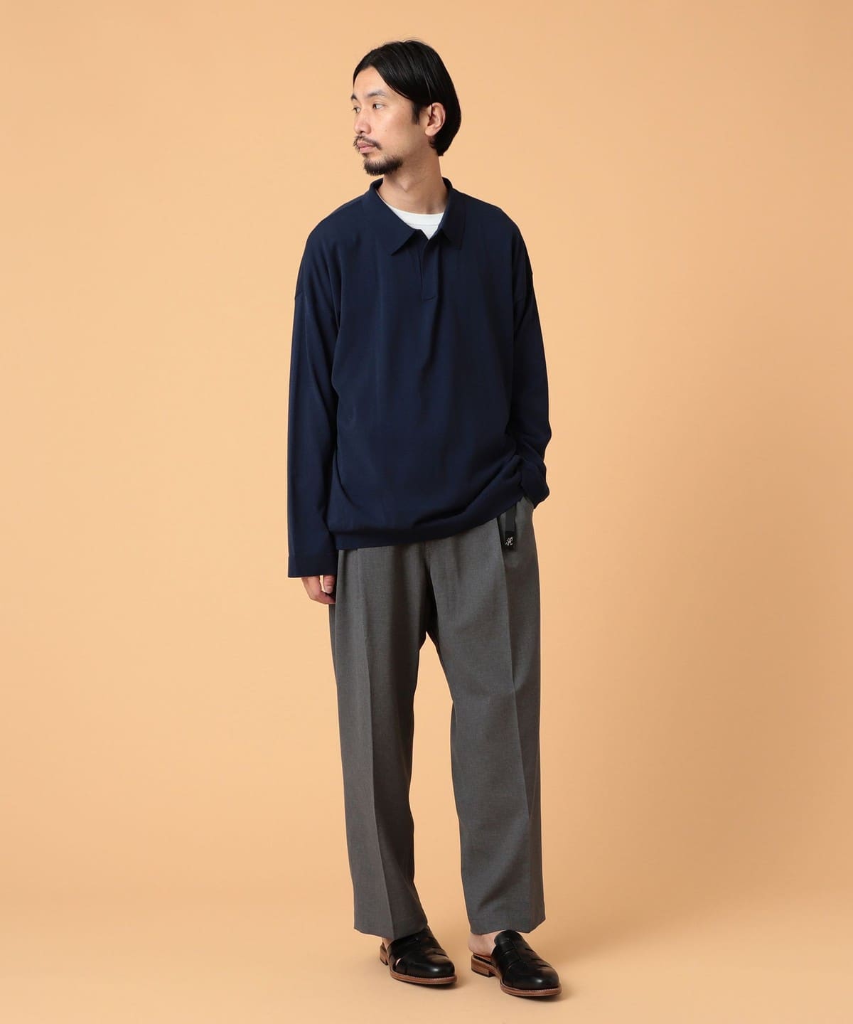 16ゲージの糸を使いニットポロシャツをスキッパー型で表現した1枚。クラシックな佇まいながら、敢えてストレートカットの袖設計にすることでモダナイズしたディレクター拘りのデザイン。絞りのない袖口で男らしくターンナップして着用するのもおすすめです。