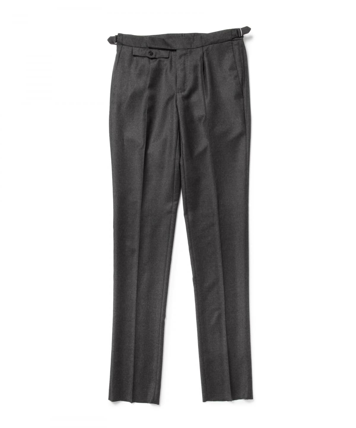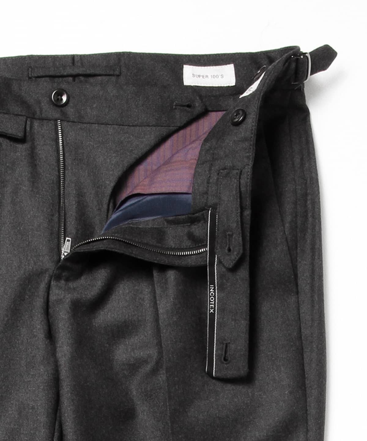 生地を変更した〈BEAMS F〉別注モデル。同ブランドの定番モデル『N35』、『30』と比べウェストのサイズは同じながらもインプリーツによりヒップまわりとわたりに余裕があります。また、サイドアジャスターを配しブリティシュさを感じさせるベルトレス仕様も見逃せません。
