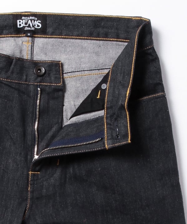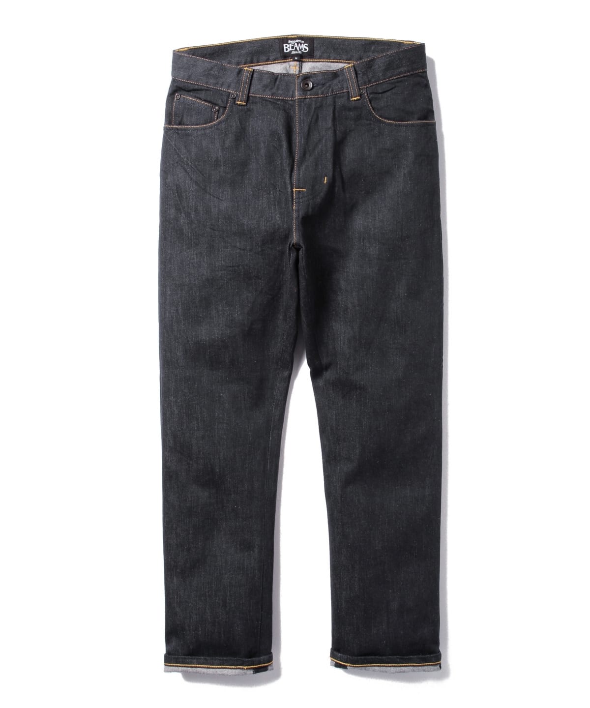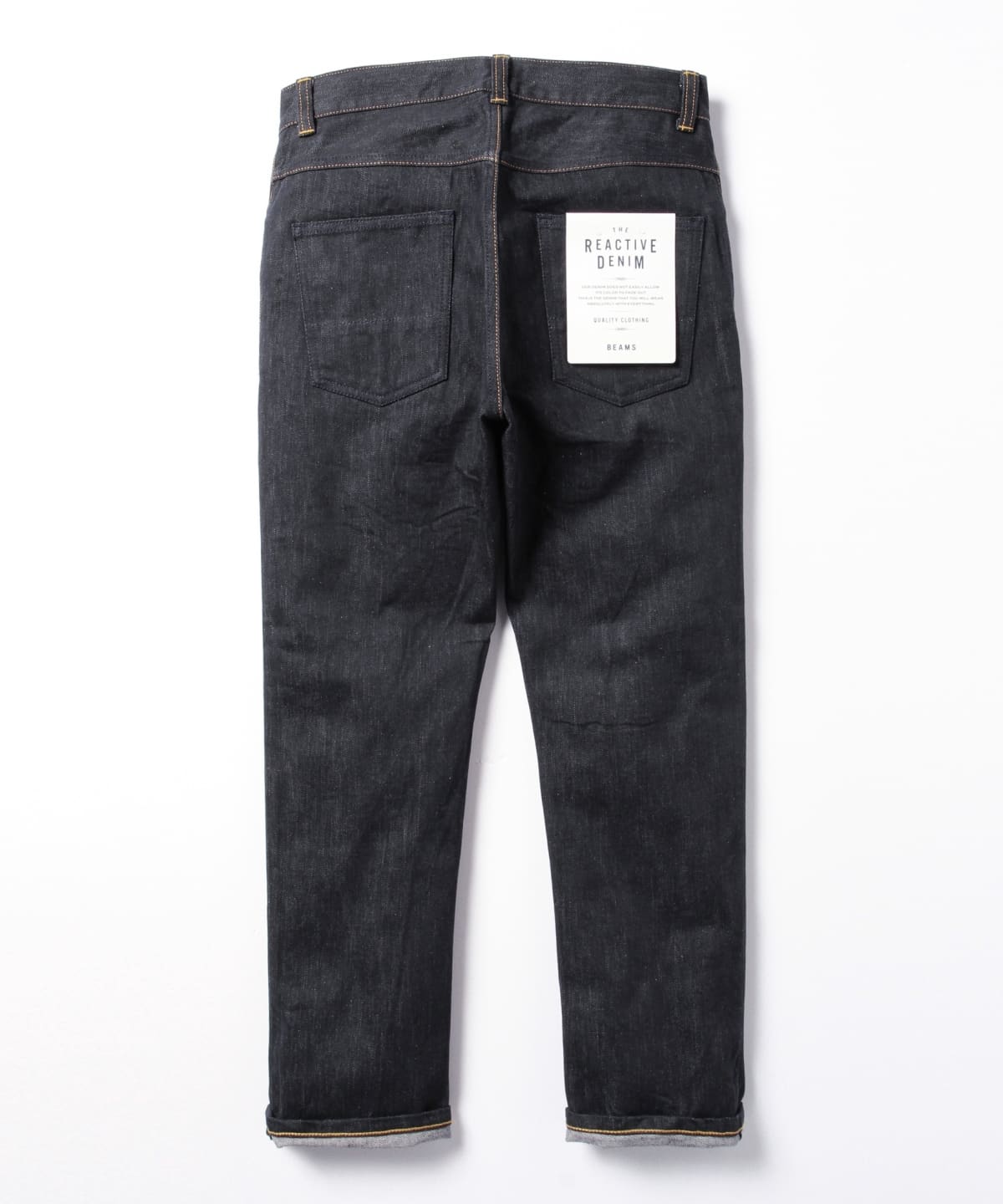 インディゴを一切使わずに、糸染めのテクニックと織りの表現で新感覚のデニムを作りました。デザインは配色ステッチを1本だけ入れ、ミニマムなものにこだわりました。シルエットは膝下をテーパードさせたすっきりとした型に設計しています。注目のこちらの生地の特徴は“色落ちしずらい”こと。