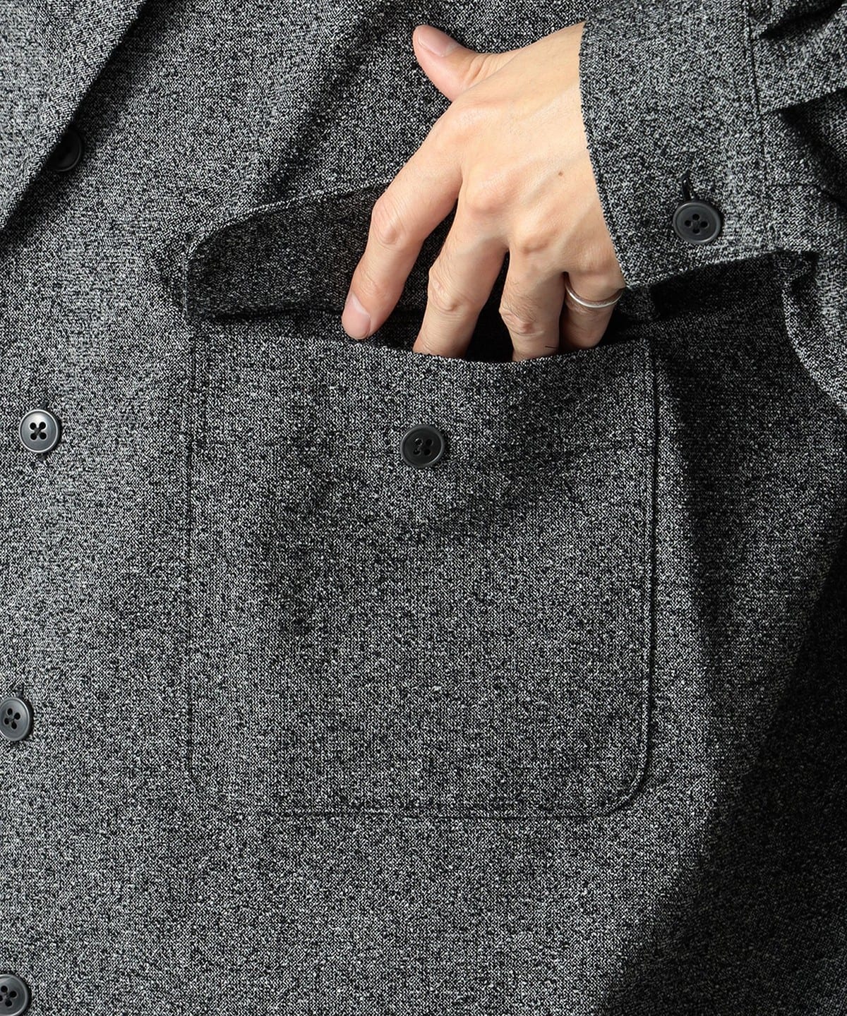 ゆとりのあるボックスシルエット、ボリューミーなスリーブフォルムも目を惹くリラクシングなオープンカラーシャツ。やや深めに設計された前合わせもさりげないデザインです。テキスタイルは杢調のような奥行きのある表情のコットンブレンドブークレ。適度な落ち感やソフトな肌触りも魅力的な1枚です。