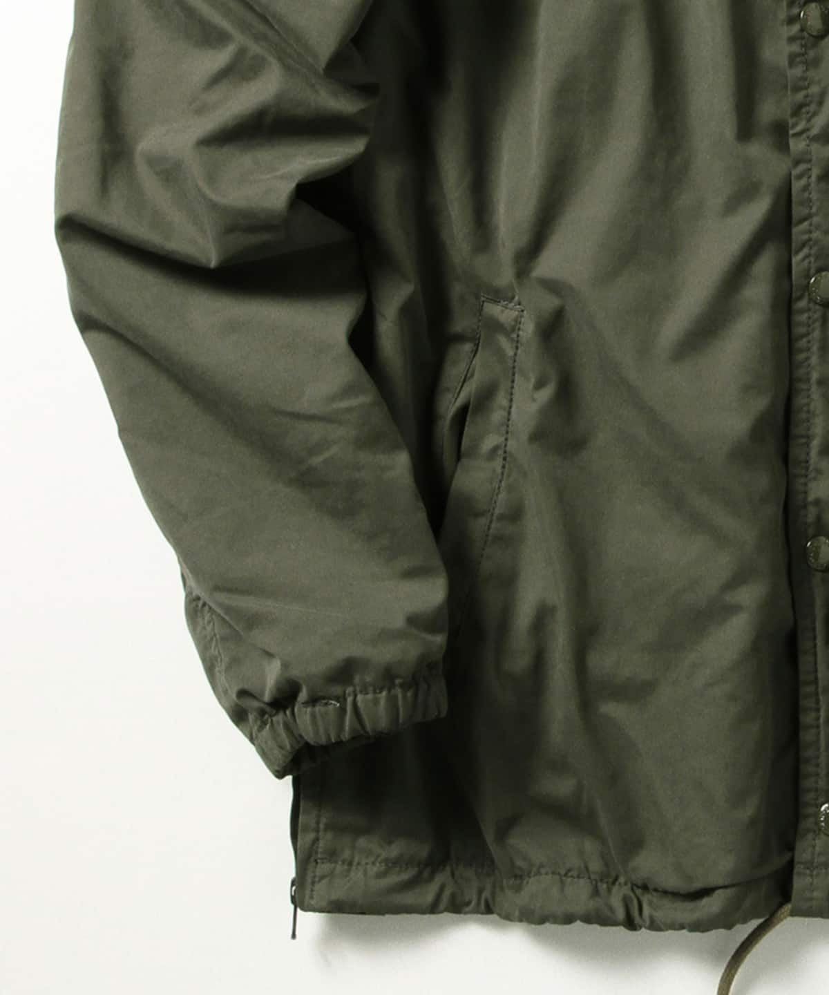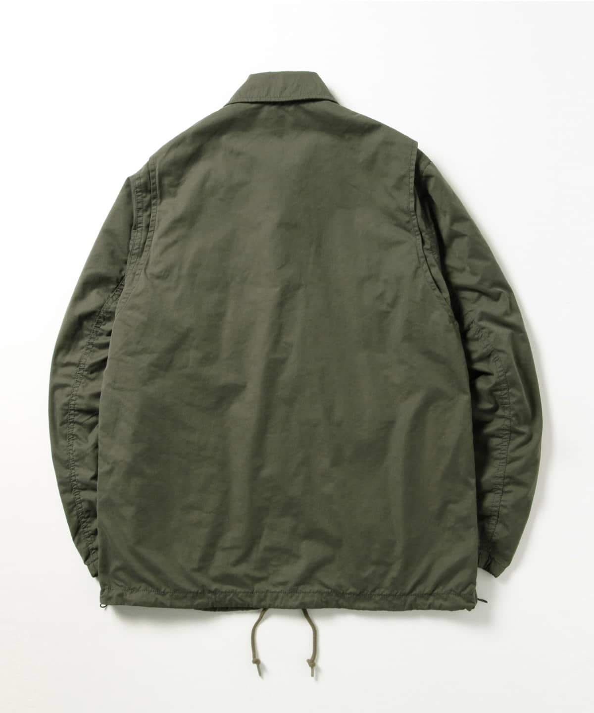 〈BEAMS〉SURF&SK8バイヤー加藤が手掛けるコレクション〈SSZ〉。フロントは一見シンプルなデザインで都会的な雰囲気を醸し出しているが、インナーやパンツのポケットを使いやすいように考えられたサイドジップ、絞りを効かせることで独特なドレープ感を生む裾のドローコード、ミリタリーアイテムを彷彿させる幾多にも重ねられた襟のステッチや、動きやすさを重視した背面の大きなアクションプリーツと男気溢れるディテールが満載。 生地にもこだわり、独特なヌメリ感と程良いハリ、コシがある生地を使用するなど通常のCOACH JACKETとは一線を画す仕上がりです。