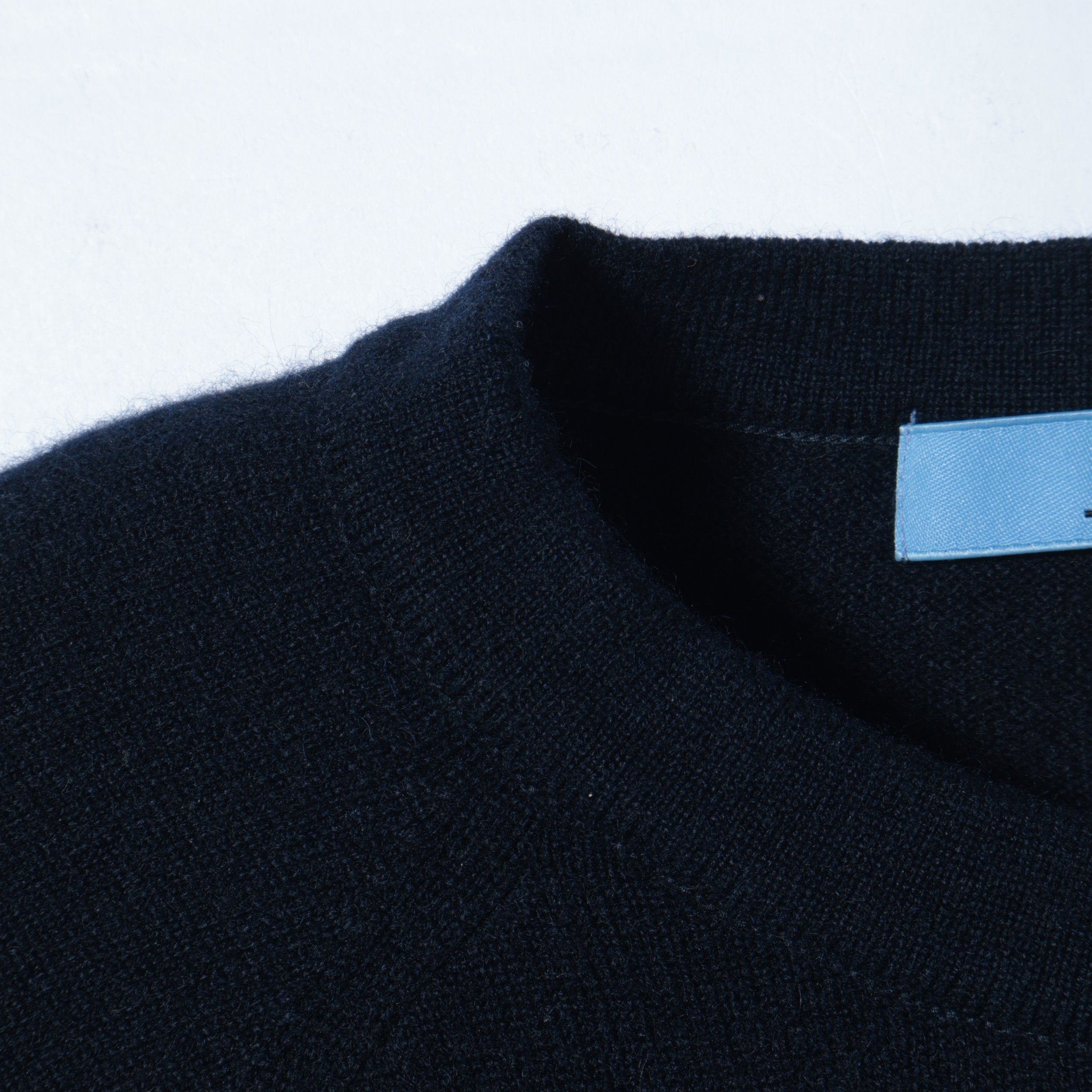 滑らかな肌触りが特徴のカシミヤ素材を使い、大胆なレタードを施したクルーネックニット。王道の濃紺は普段の装いに凛とした雰囲気を添えてくれます。1枚着はもちろん、ジャケットやブルゾン、コートのインナー使いでも活躍する一品です。