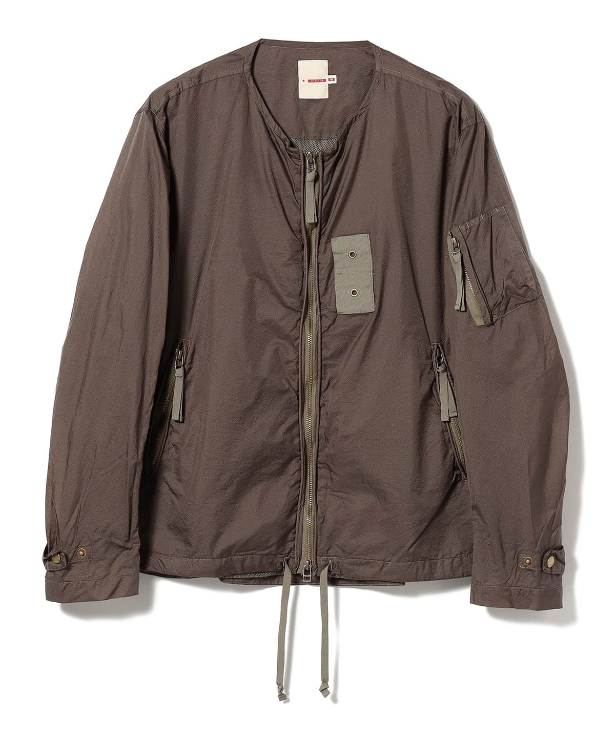 ポケットの配置などミリタリーらしい武骨さは残しつつ、襟、袖、裾のリブを排除し軽快な印象に仕上げました。レイヤードに便利なダブルジップ仕様や、シルエット調整のできる裾のドローコードなど、嬉しいディテールも満載です。
