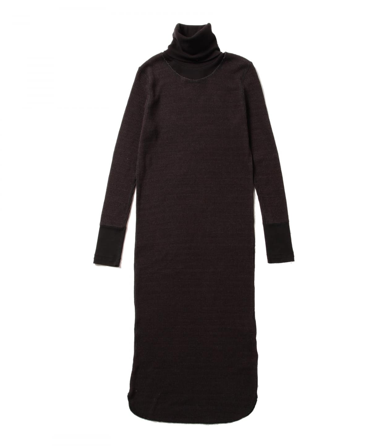 タイトなラインながらもリラックスムードのロングワンピース。目の詰まったしっかりとしたサーマル素材を使用し、長めかつタイトなサイズ感でボディラインに滑らかにフィット。程よく長めの袖に、ゆるっと仕上げたオフタートルでさらりとこなれ感をプラスしました。
