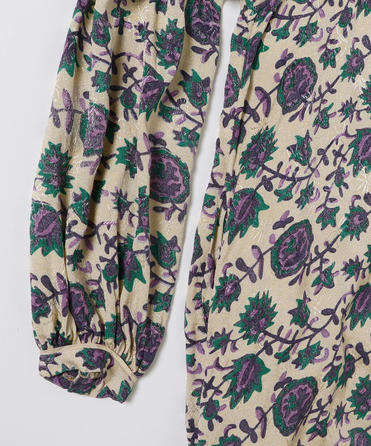 レトロっぽさが魅力の大ぶりの花柄が目を惹くワンピース。女性らしさ際立つVネックとボリュームのある袖が特徴の一枚です。エレガントな雰囲気に仕上がったシルエットもポイント。ワードロープに加えたいヴィンテージさが魅力の逸品をいかがでしょうか。