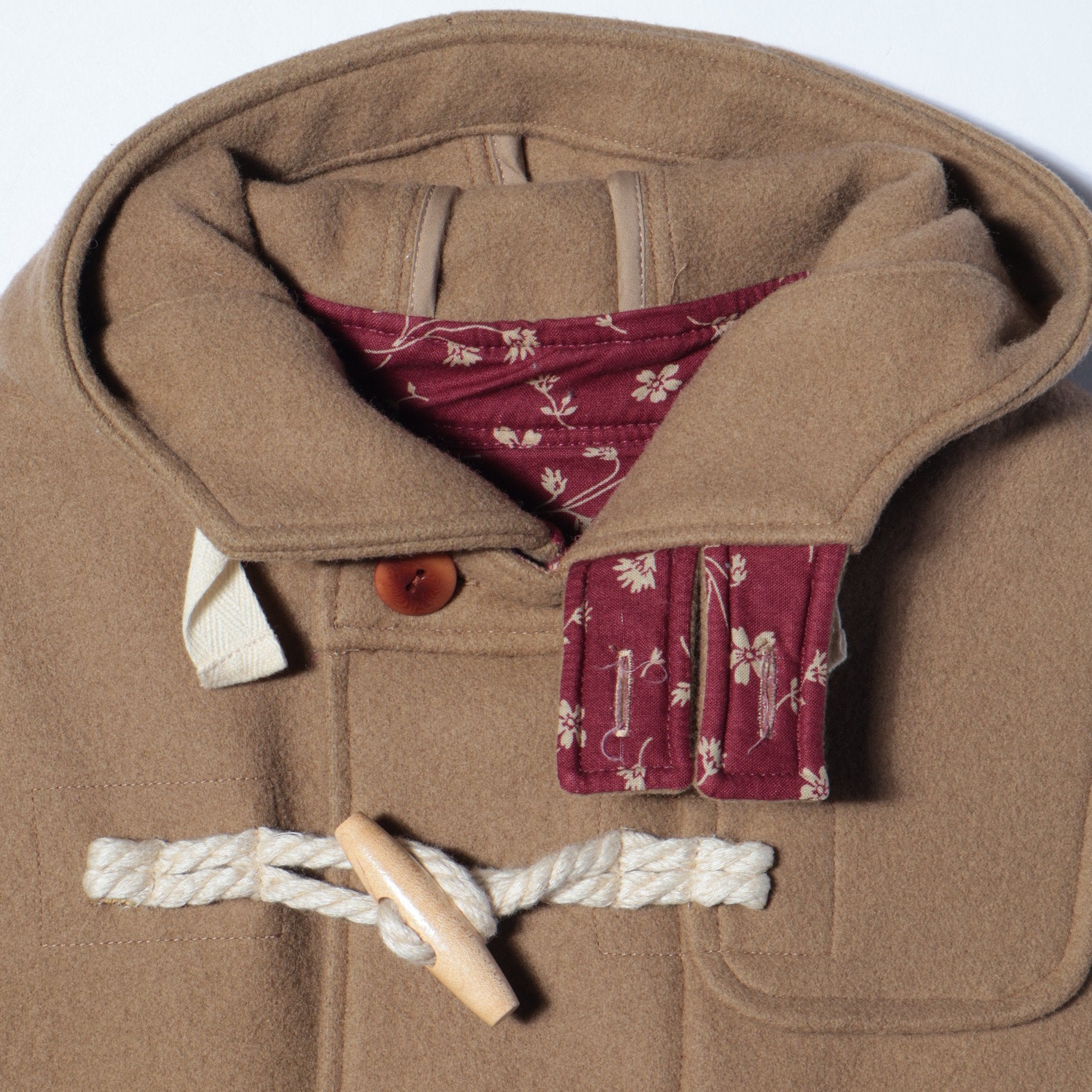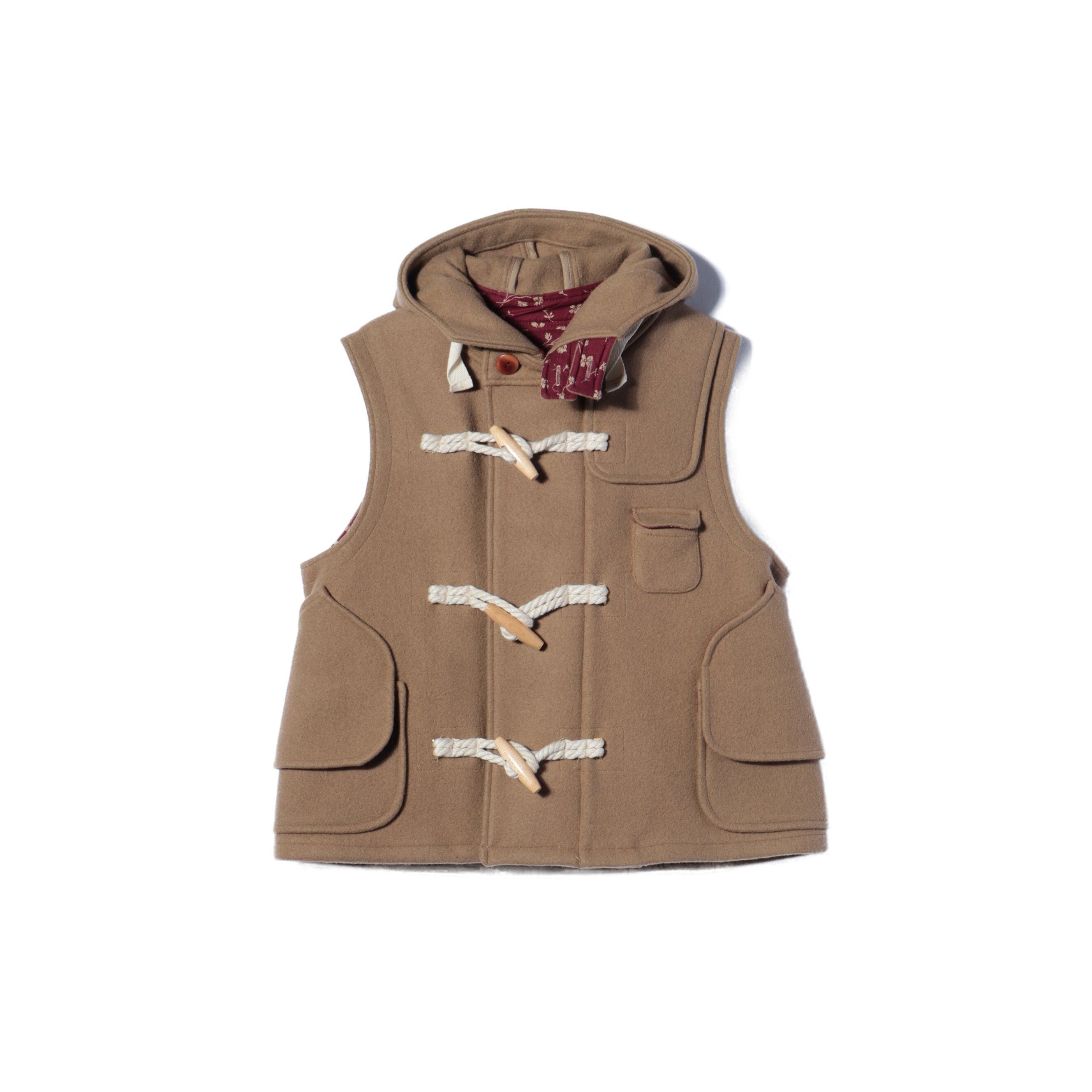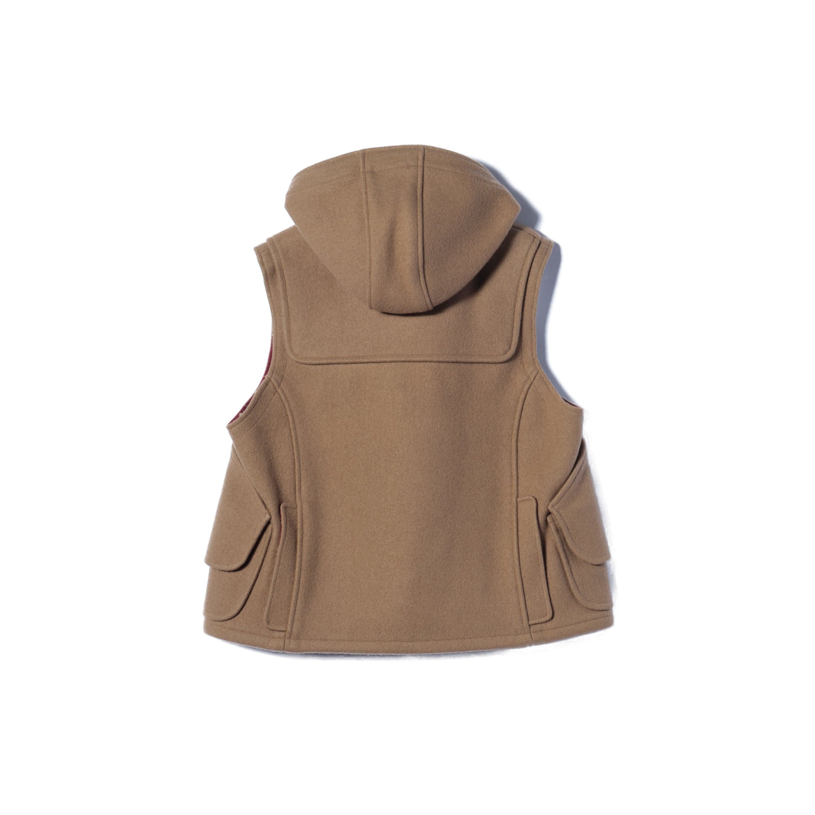 ダッフルコートのデザインを踏襲したベスト。着用時にチラッと見える裏地のデザインも