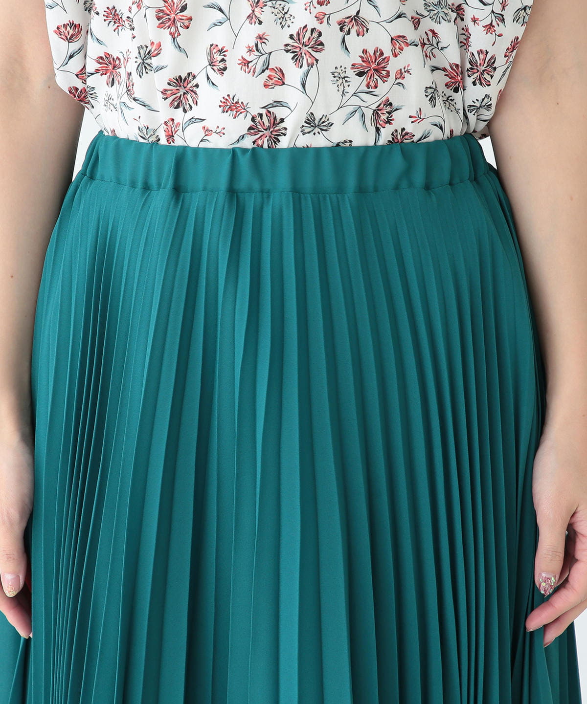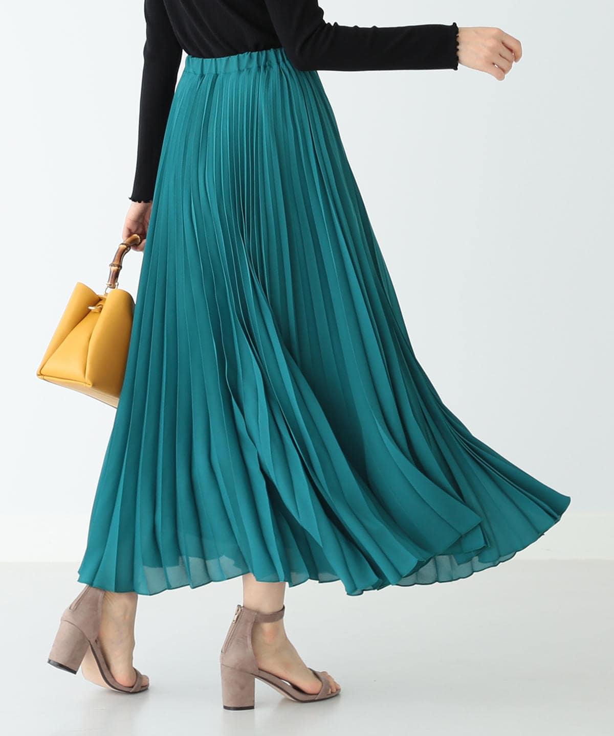 スタイリングのアクセントにぴったりな、プリーツ仕立てのマキシスカートが登場。軽やかなシフォン素材が、歩く度に優雅に揺れて上品な印象に。鮮やかなグリーンカラーが気分を盛り上げてくれる一枚です。