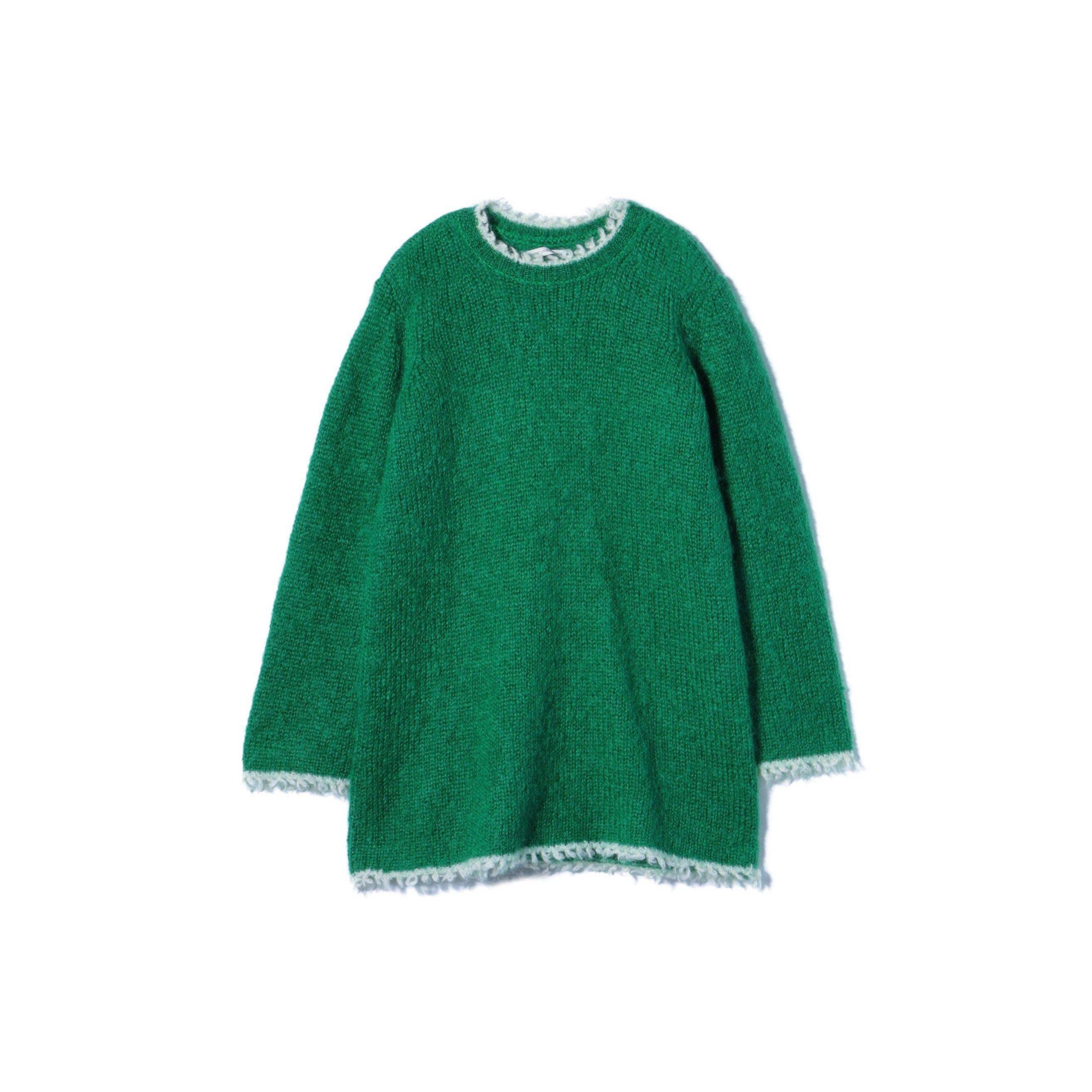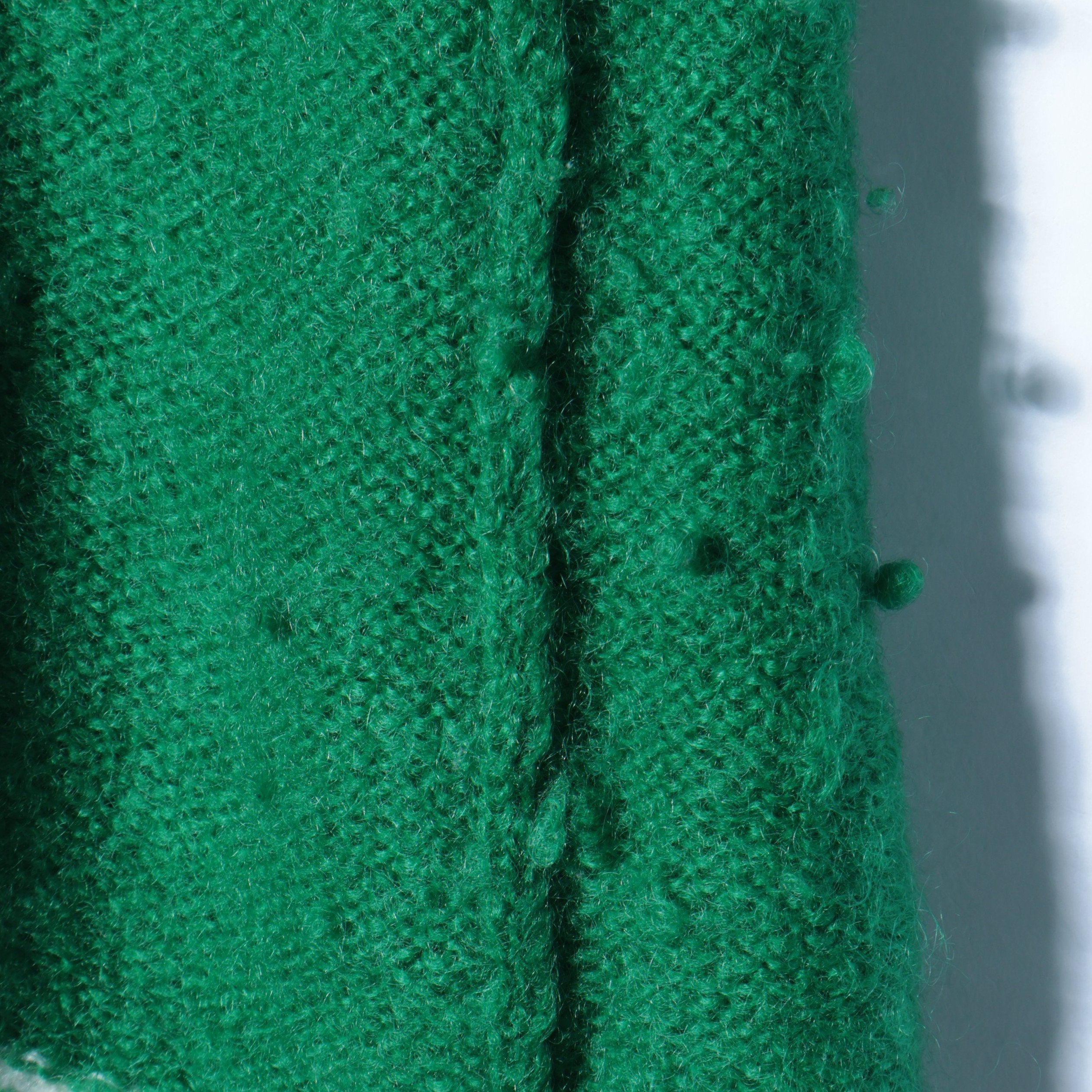 鮮やかなカラーが特徴のニット。随所に控えめなフリンジが配されています。