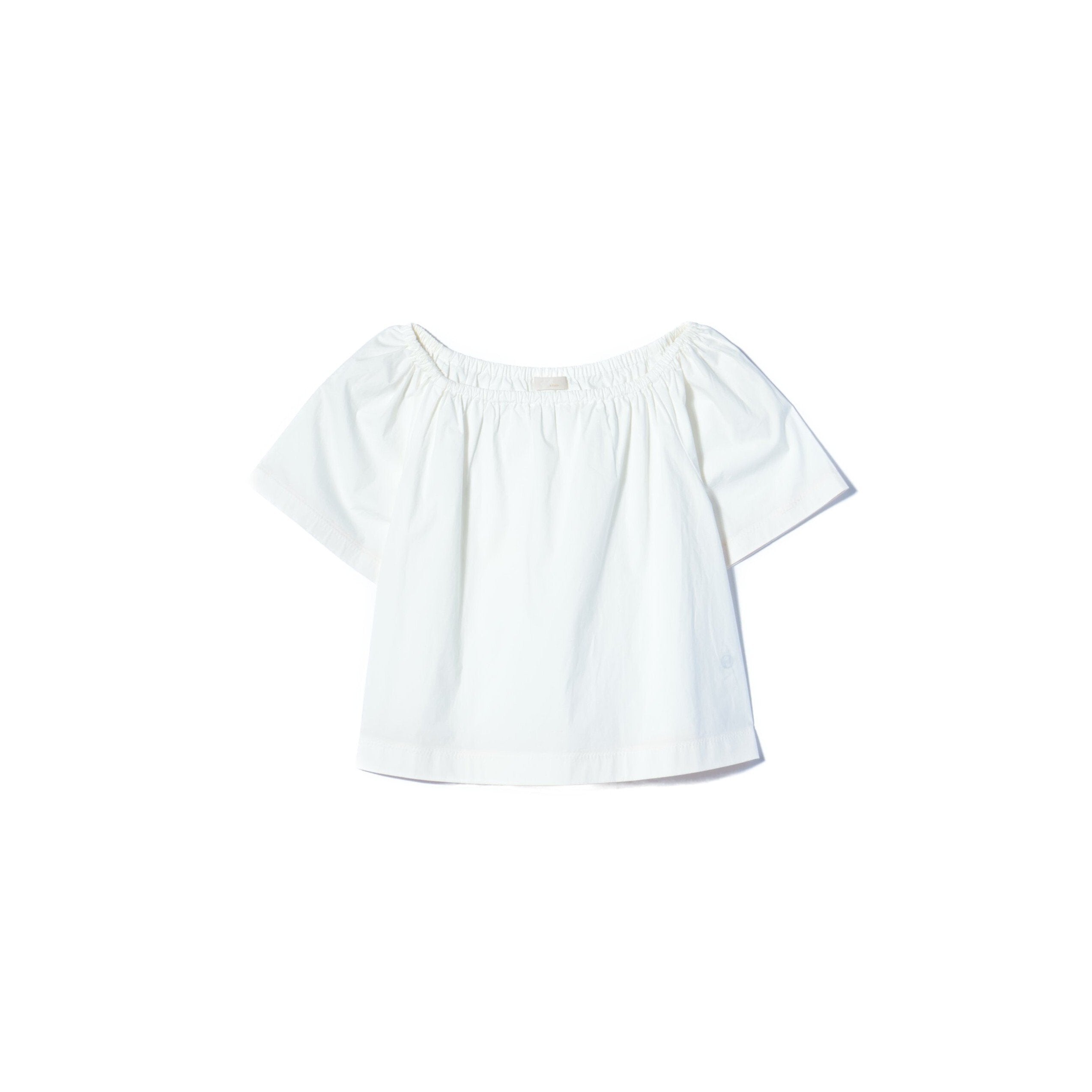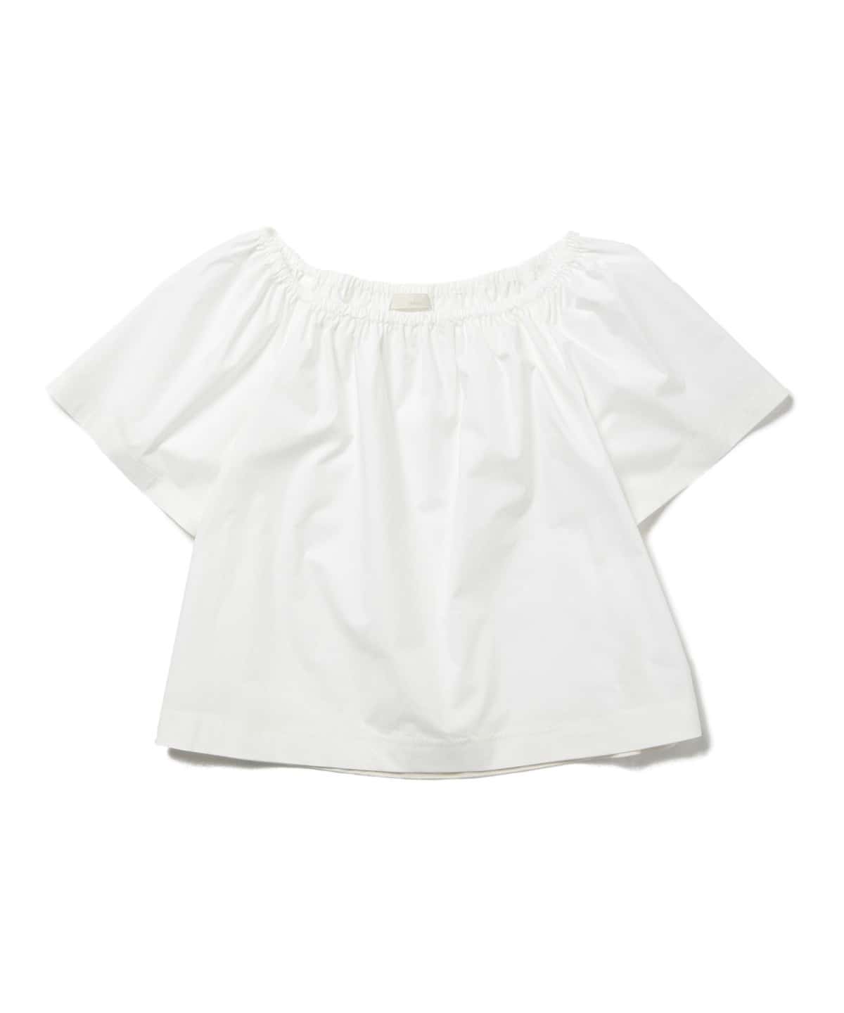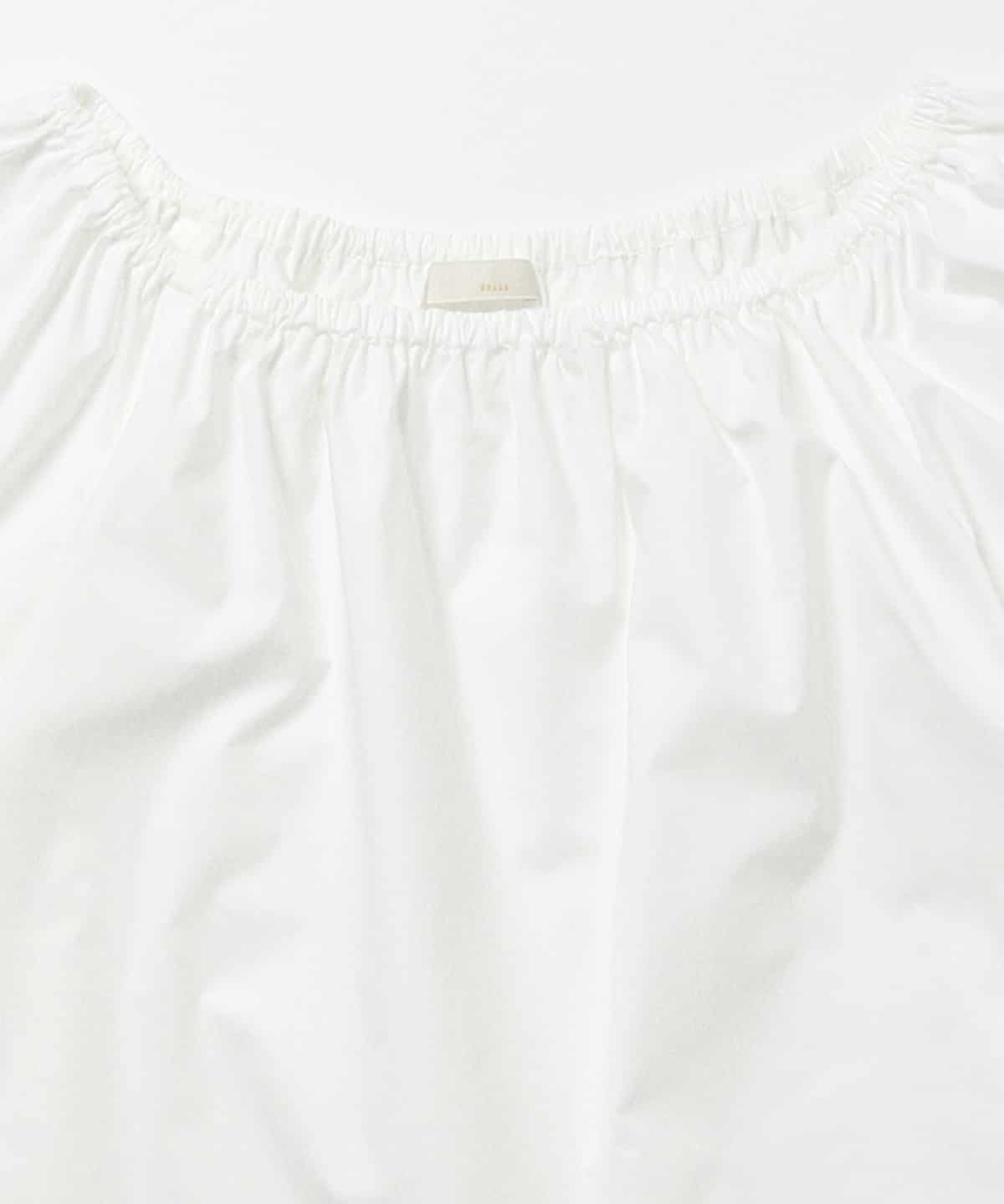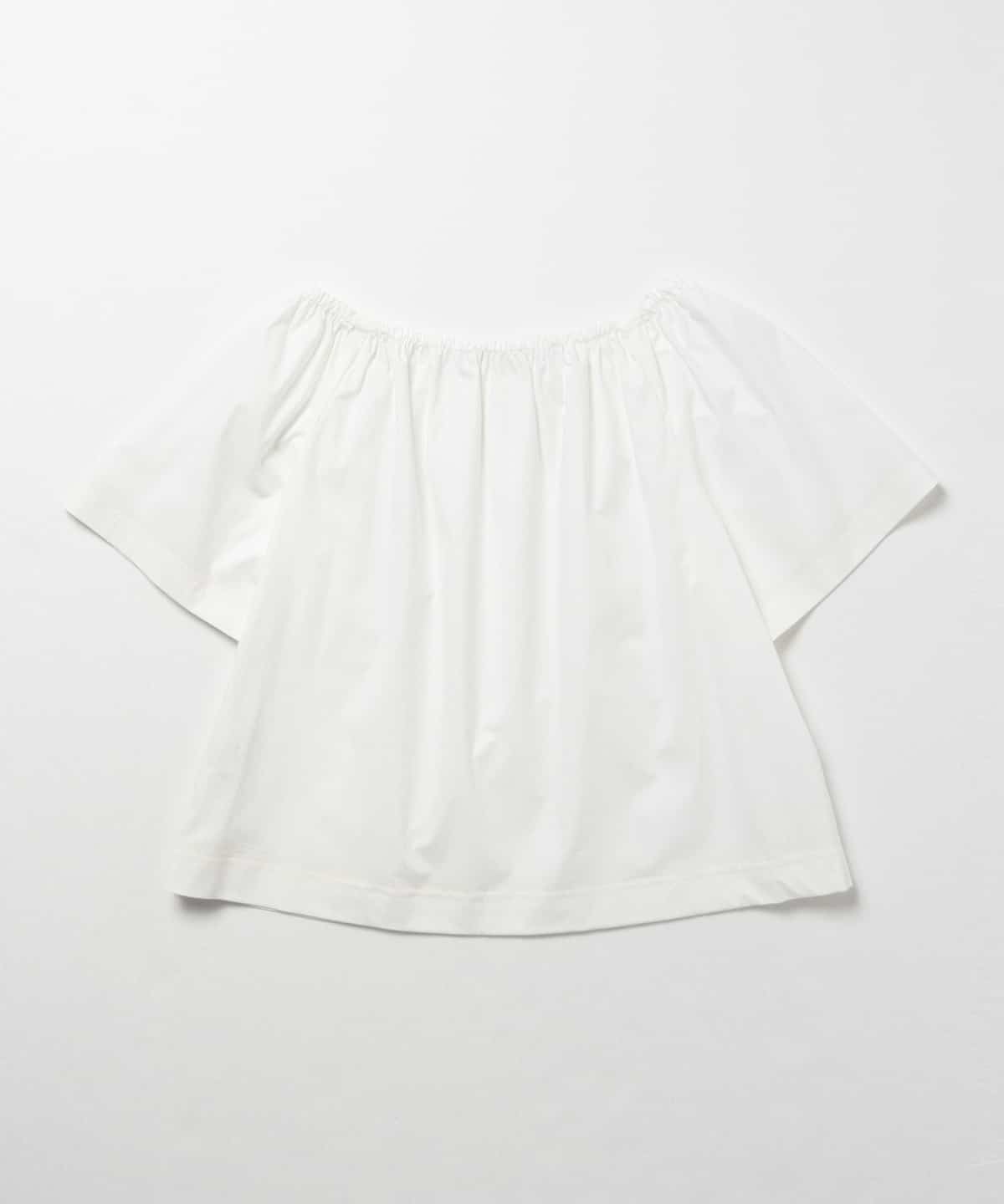 オフショルダーとギャザープルオーバーで楽しめる2WAYブラウス。上品な表情を浮かべる、高密度のコットンストレッチ素材を使用。袖口と裾の裏側には、フランス製のグログランテープを配色で施しポイントに。見えないところも上質さに拘った一枚です。