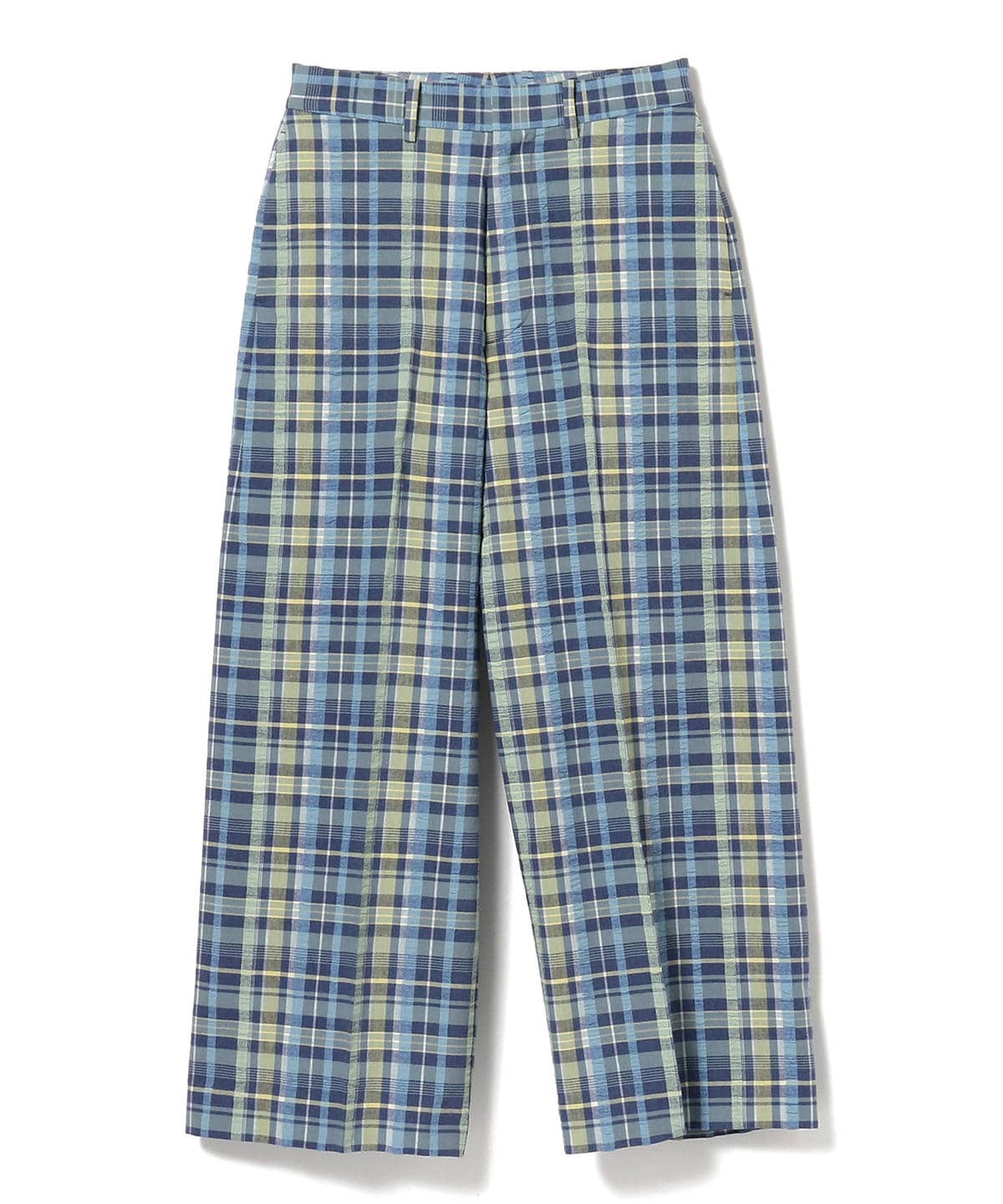 鮮やかなカラーリングが目を惹くチェック柄スラックスです。国内で作成した〈BEAMS BOY(ビームス ボーイ)〉オリジナルのサッカー生地は、凸凹の質感とワッシャー加工による肌触りの良さが魅力。ワイドシルエットに落とし込む事で、カジュアルなスラックススタイルをお楽しみいただけます。