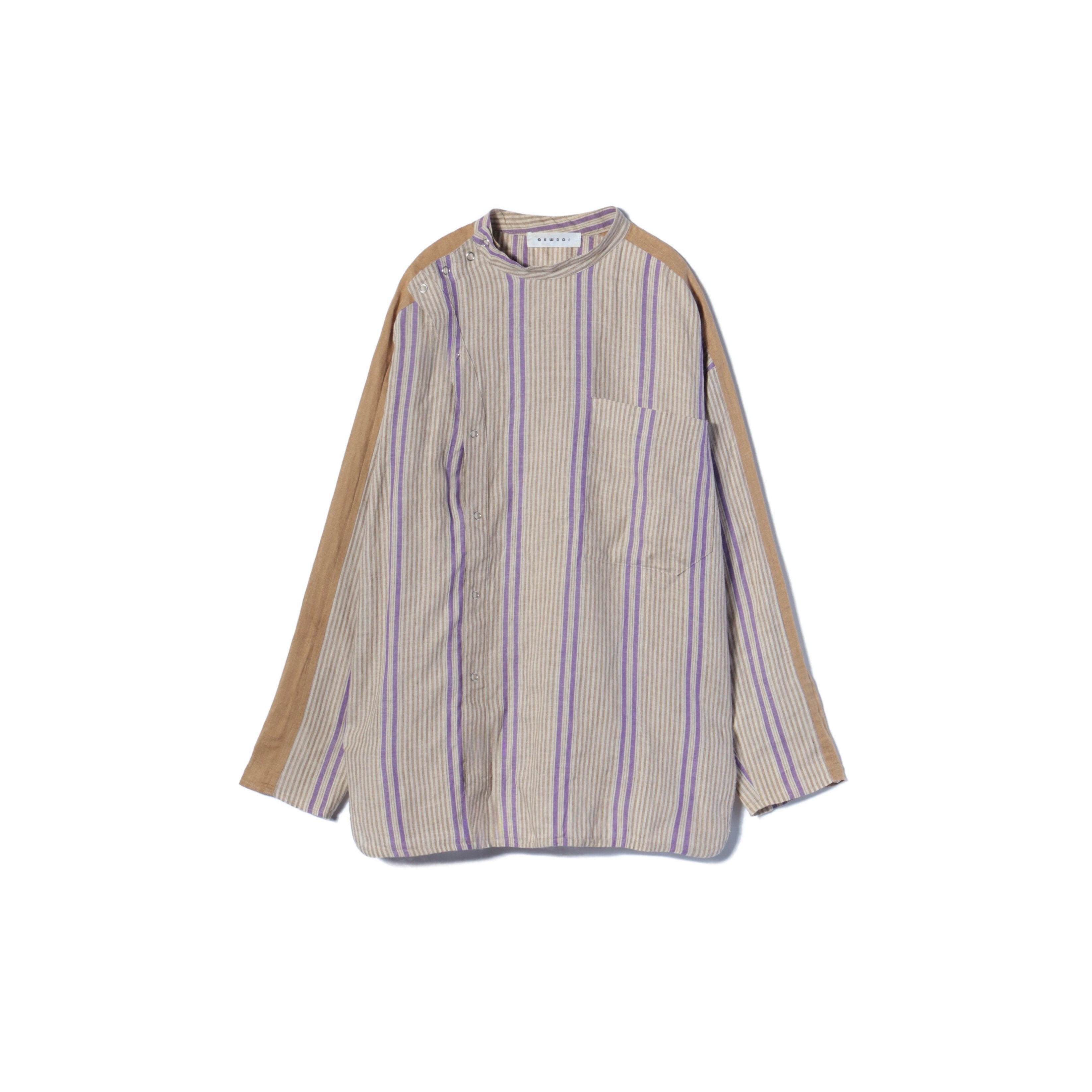 QUWAGI / ストライプ スタンドカラーシャツ