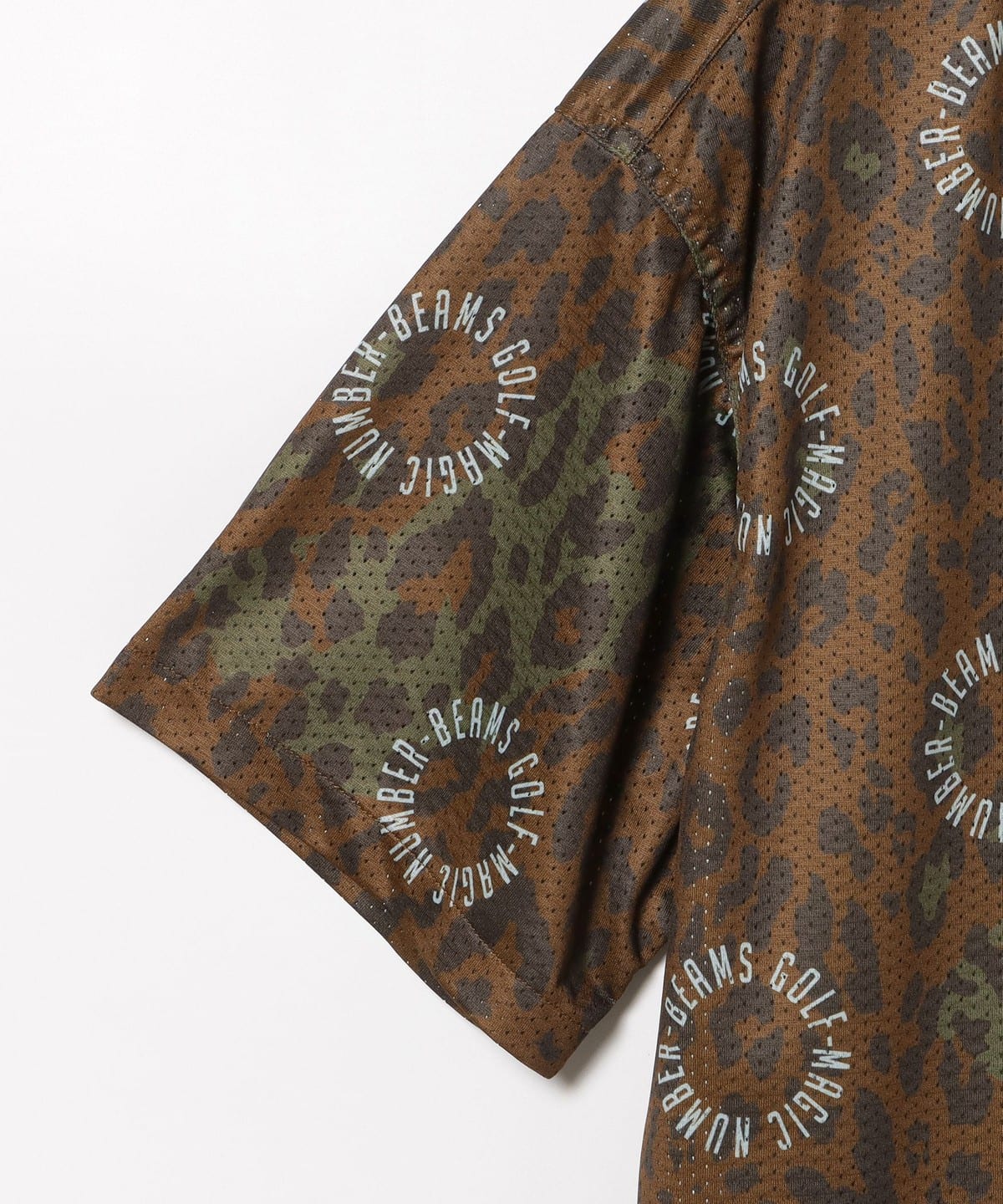 ボックスシルエット型の別注オープンカラーシャツ。深い色合いが特徴のレオパード柄の上に〈MAGIC NUMBER(マジックナンバー)〉と〈BEAMS GOLF〉別注の証となるサークルロゴを配しました。軽量な2WAYストレッチのポリエステルファブリックは、通気性に優れ夏ゴルフにおすすめ。他と差をつけるスタイリッシュさとリラックスムードを兼ね備えたひと品です。